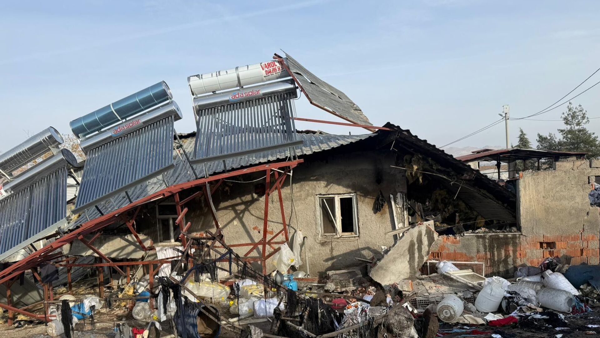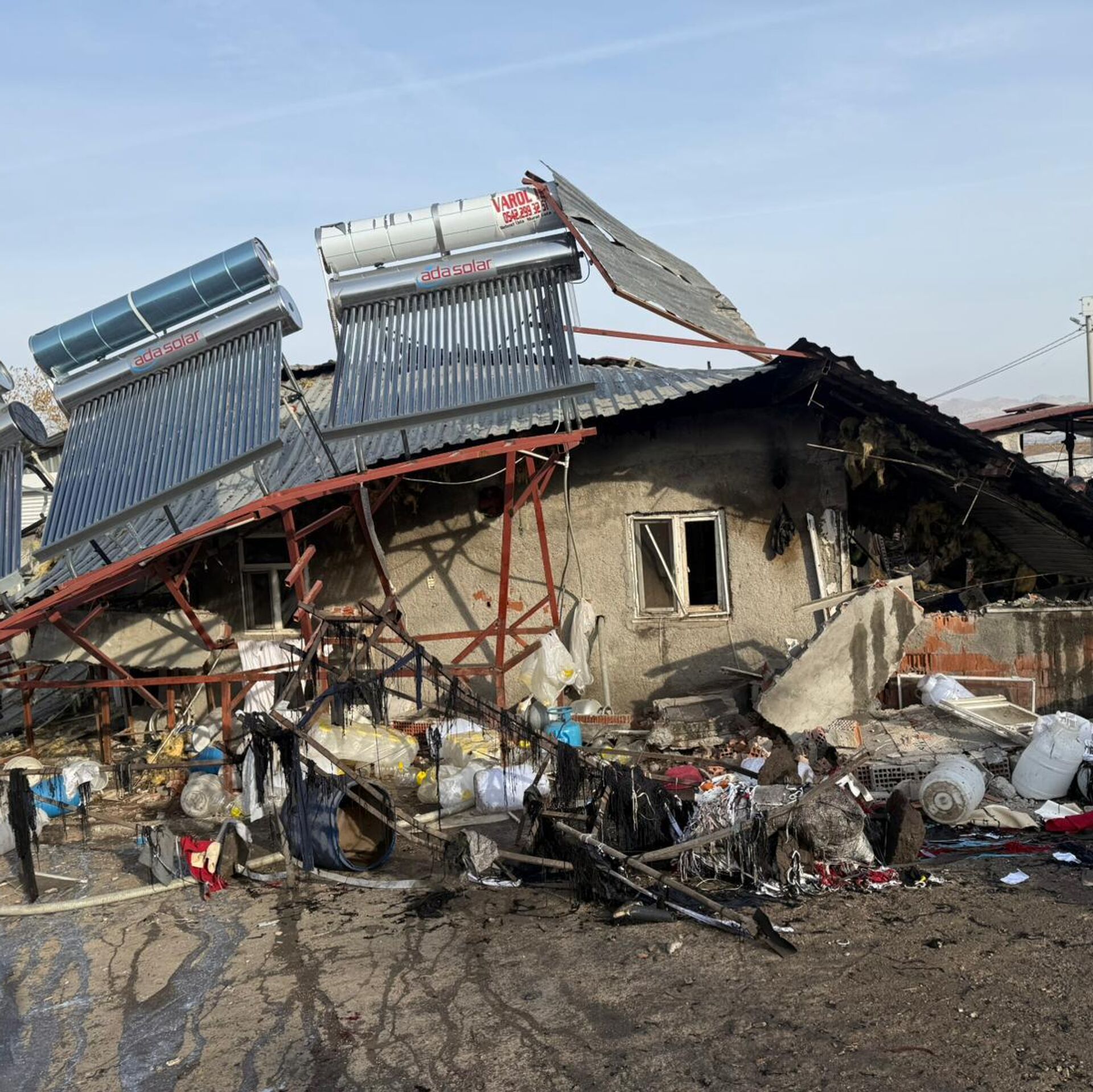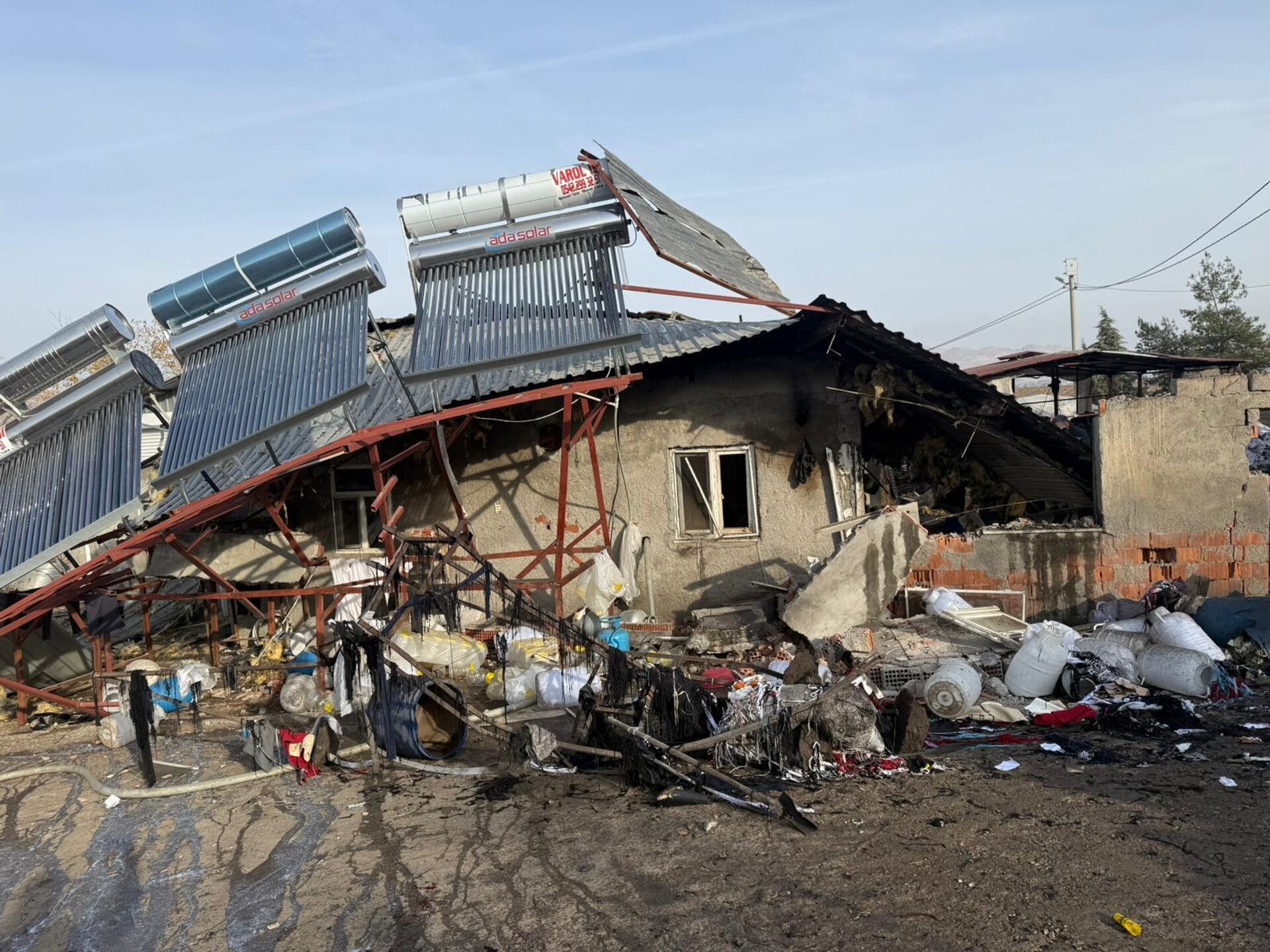 Patlamanın etkisiyle duvarlarında çökme meydana gelen tesis, hasar gördü.