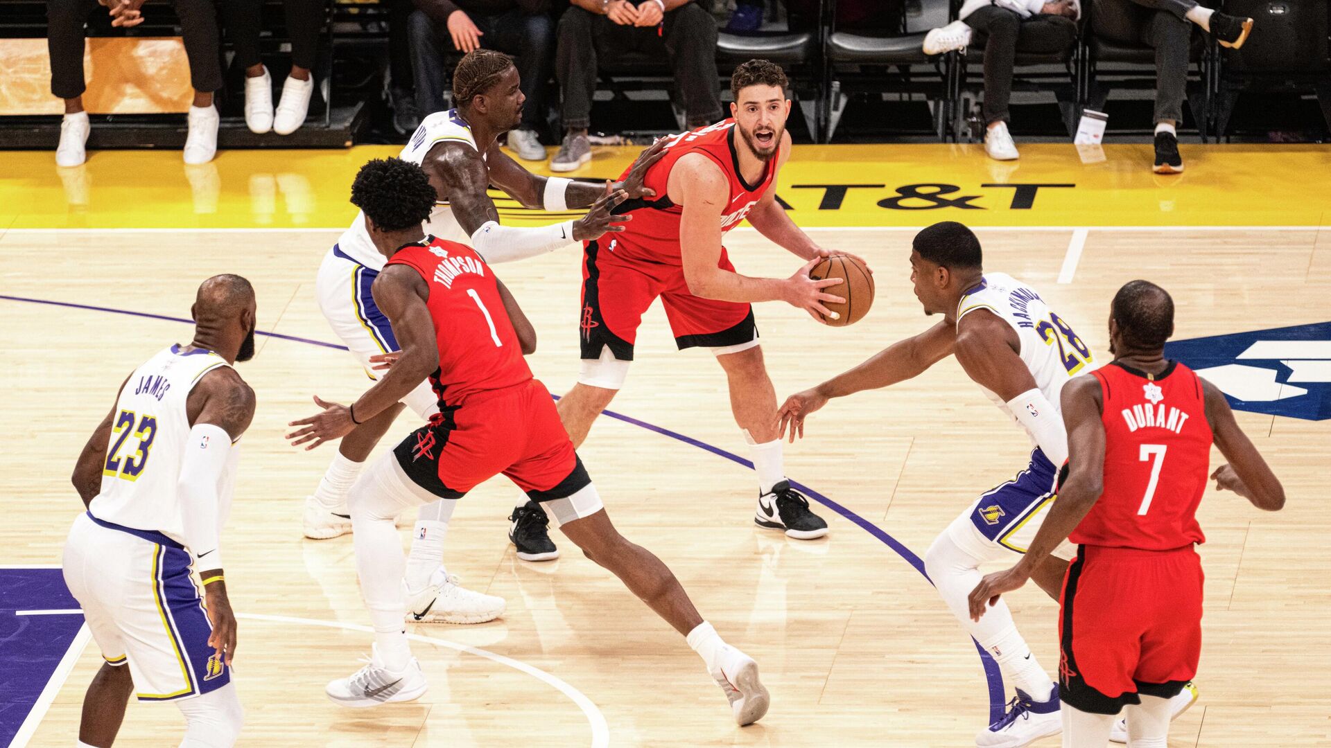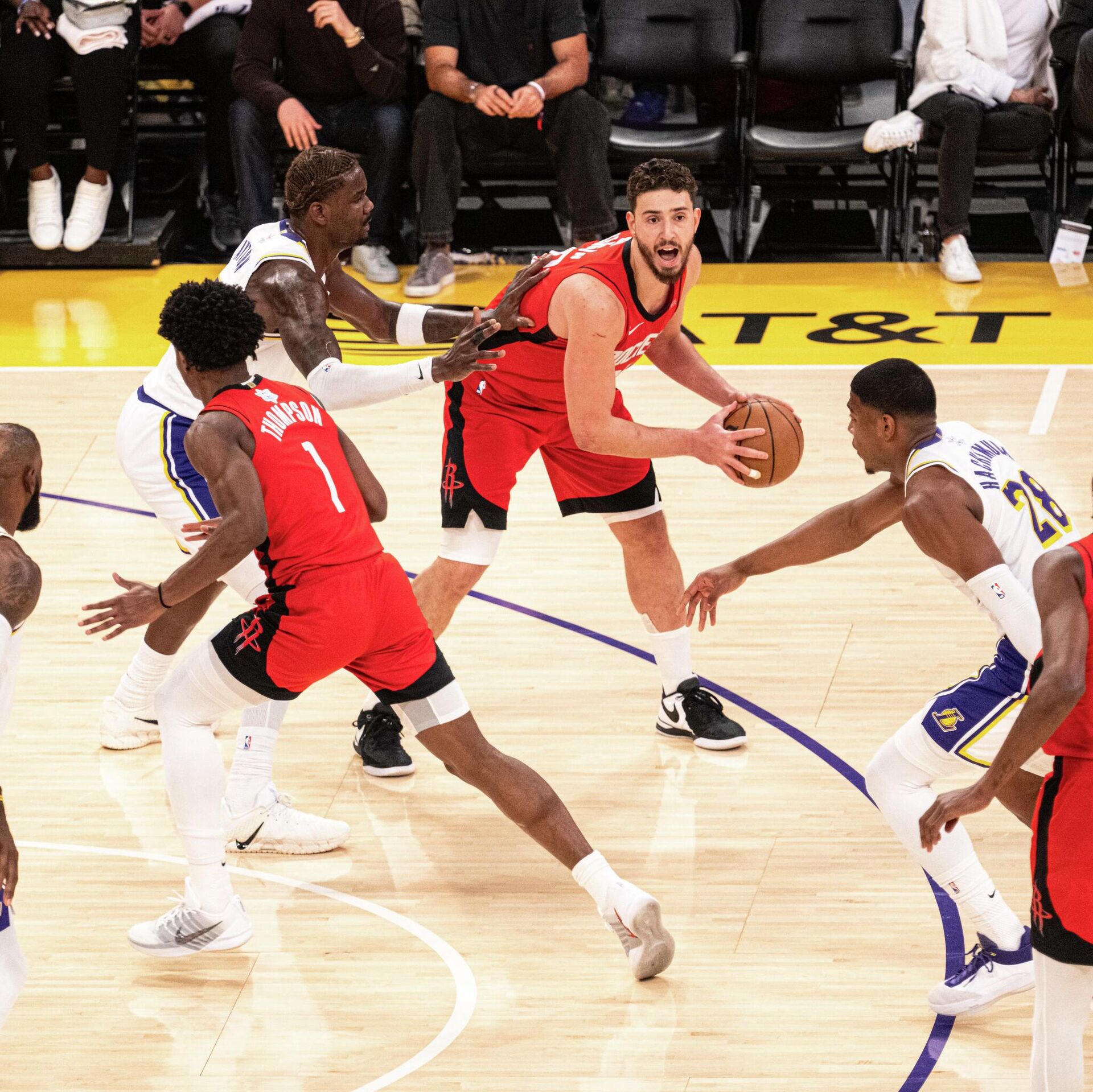 Amen Thompson 26 sayı üreterek altı oyuncunun çift haneli skora ulaştığı maçta takımına liderlik etti ve Houston Rockets, Luka Doncic’li Los Angeles Lakers’ı 119-96 mağlup ederken maç boyunca hiç geriye düşmedi.