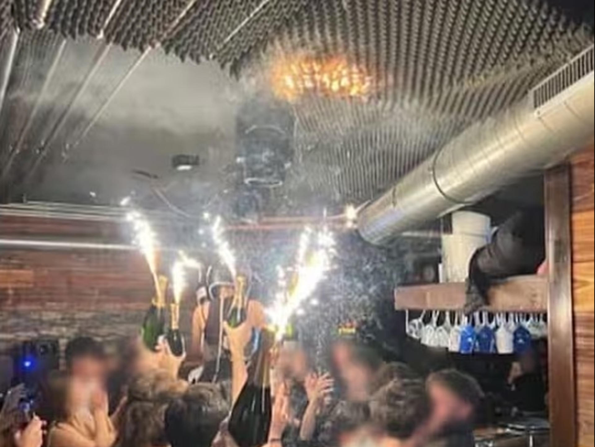Görgü tanıklarının aktardığına göre, şampanya şişelerine takılan maytaplar tavandaki yanıcı malzemeyi tutuşturdu. Alevler kısa sürede tüm mekanı sardı.