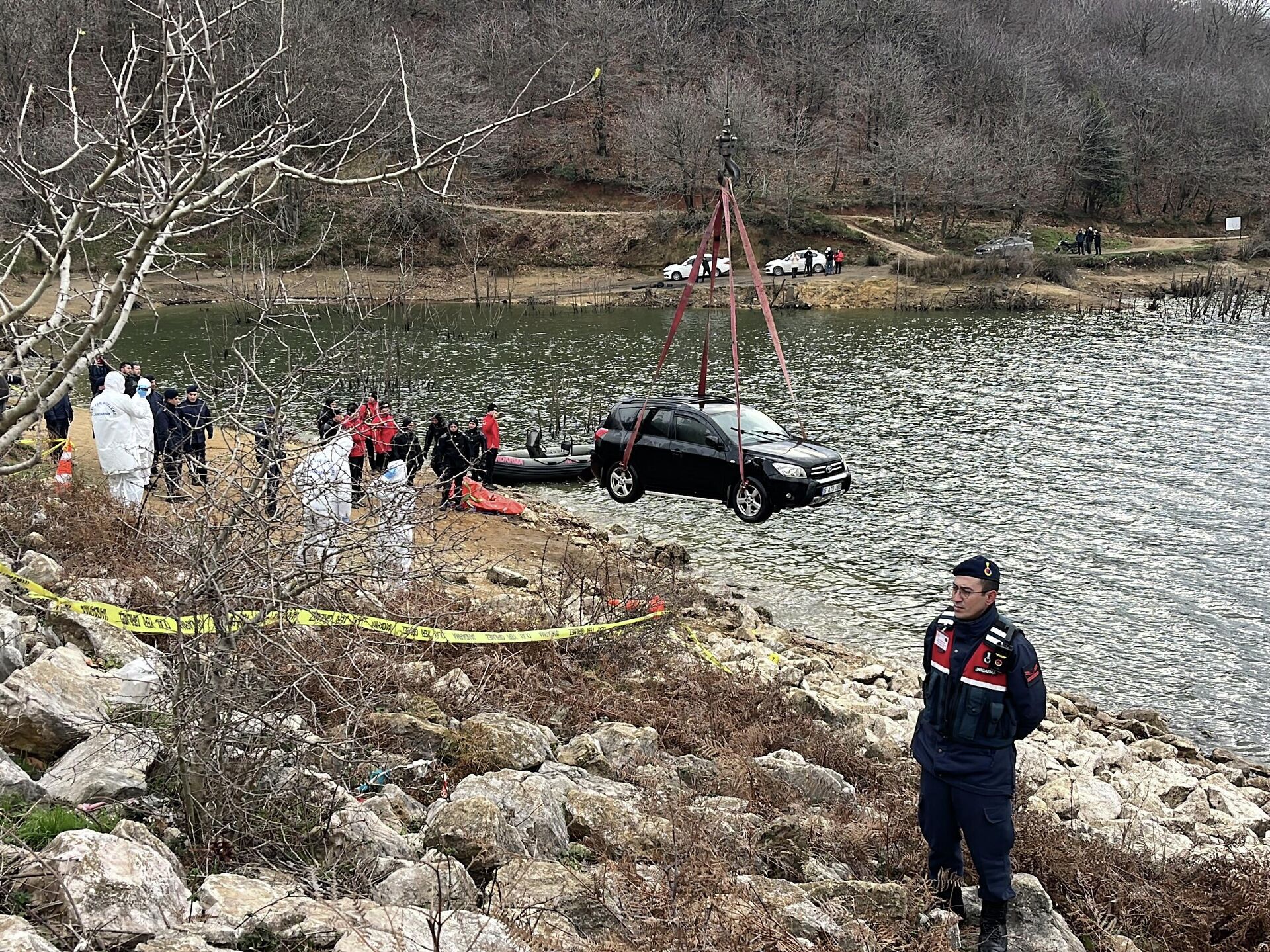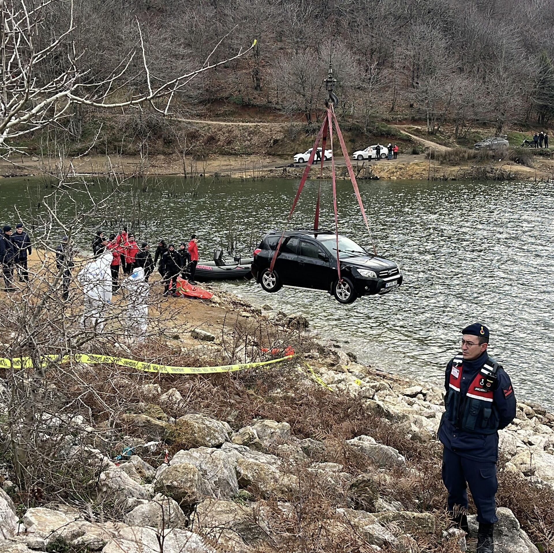 Araç vinçle çıkarıldı, inceleme yapıldı