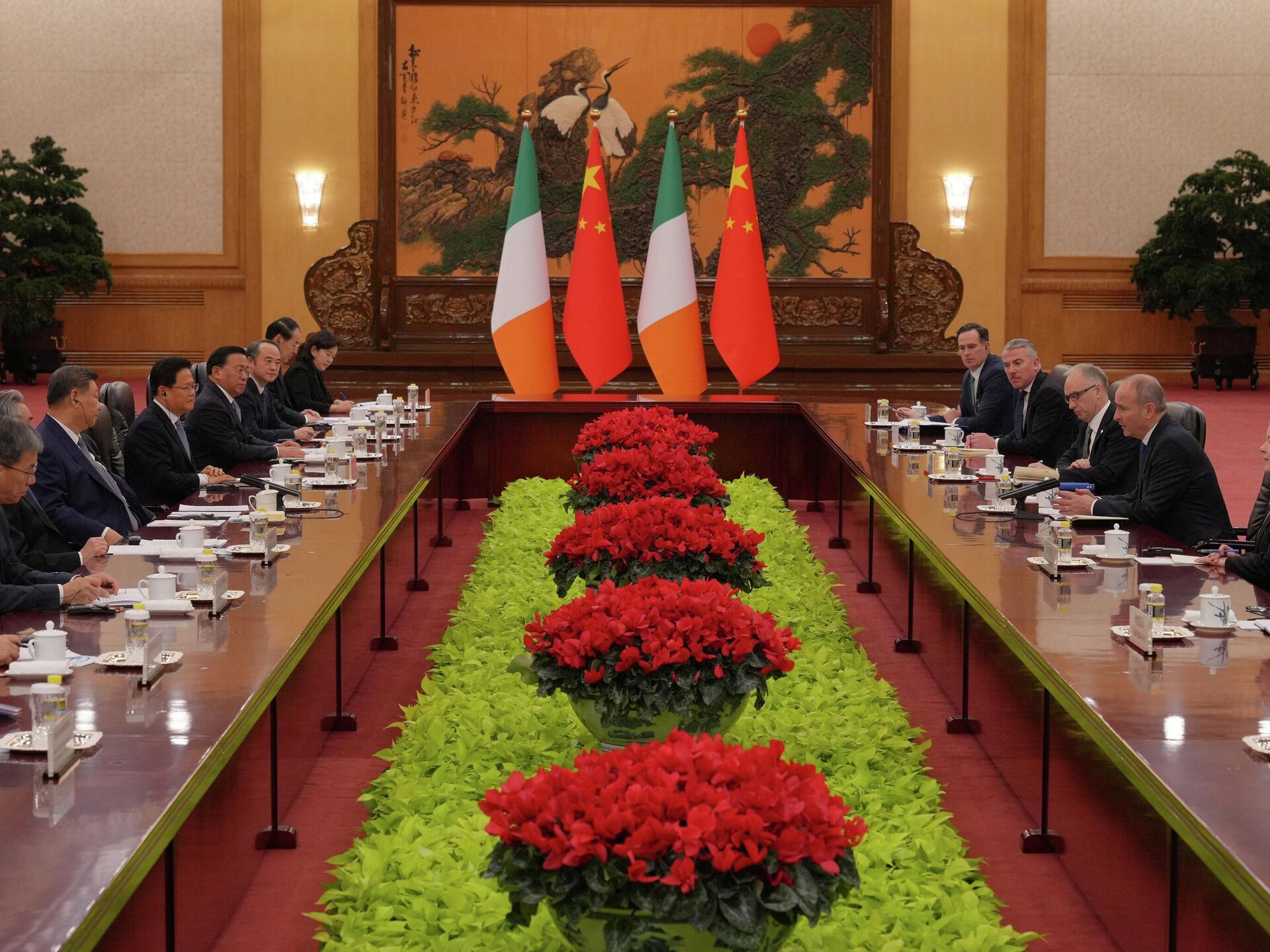 Çin lideri Şi Cinping ise ikili ticaret ve yatırımlardaki artışı memnuniyetle karşıladıklarını dile getirdi. Şi, İrlanda ile ilişkilerin 'uzun vadeli ve istikrarlı şekilde gelişmesini' istediklerini ifade etti.