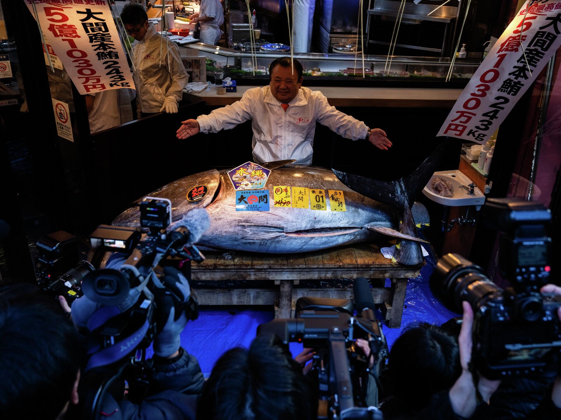 Japonya’nın başkenti Tokyo’daki Toyosu Balık Pazarı’nda yeni yılın ilk açık artırması yapıldı. 243 kiloluk mavi yüzgeçli orkinos, 510 milyon yene (yaklaşık 3.2 milyon dolar) satılarak rekor kırdı.