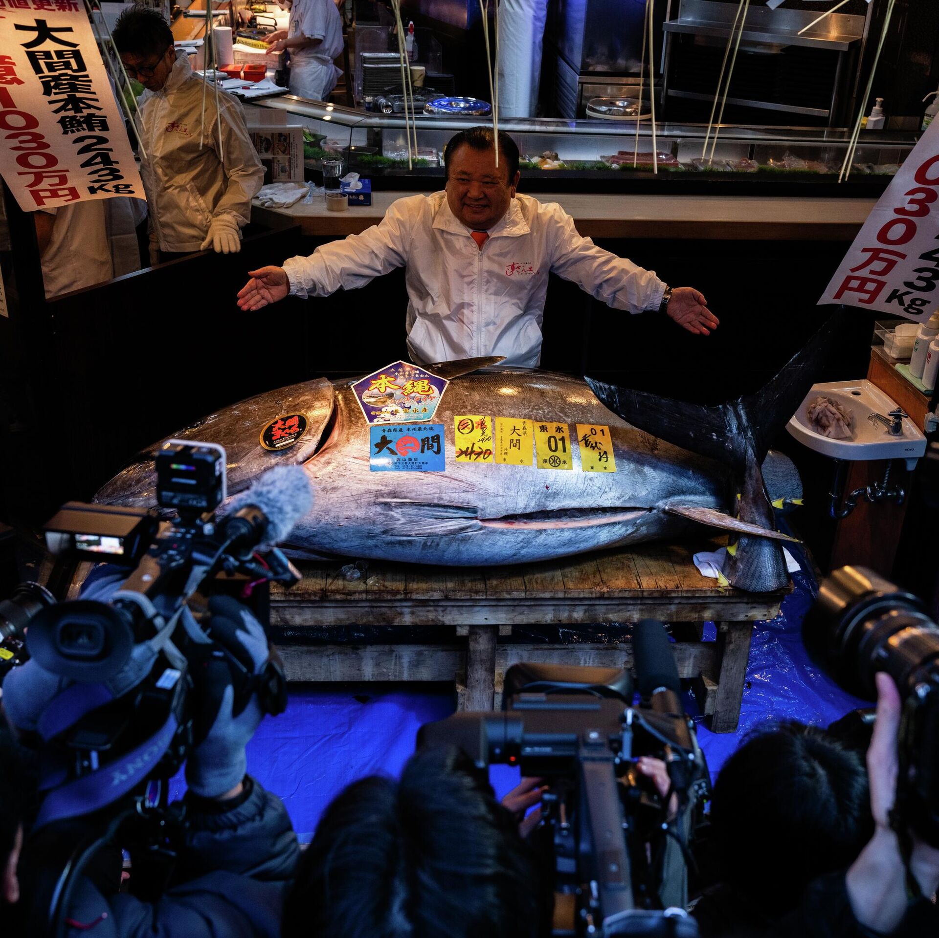 Japonya’nın kuzeyindeki Oma açıklarında avlanan ve ülkenin en değerli orkinoslarının çıktığı bölgeden gelen 243 kiloluk mavi yüzgeçli orkinos, müzayedede büyük ilgi gördü. Tokyo’daki Toyosu Balık Pazarı’nda dün sabah gün doğmadan gerçekleştirilen geleneksel yeni yıl açık artırmasında yaklaşık 3.2 milyon dolarlık en yüksek teklifi, Sushi Zanmai restoran zincirinin sahibi Kiyoshi Kimura verdi.