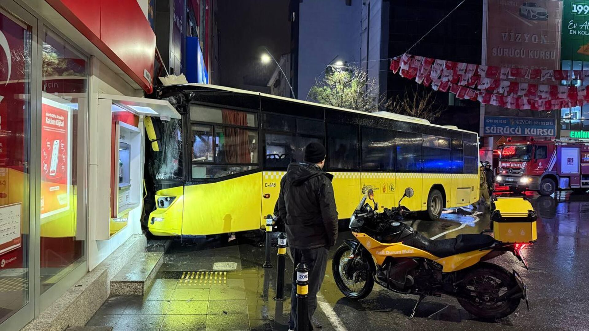 Kartal'da, Kordonboyu Mahallesi Atatürk Caddesi'nde seyreden İETT otobüsü henüz bilinmeyen bir nedenle binaya çarptı.