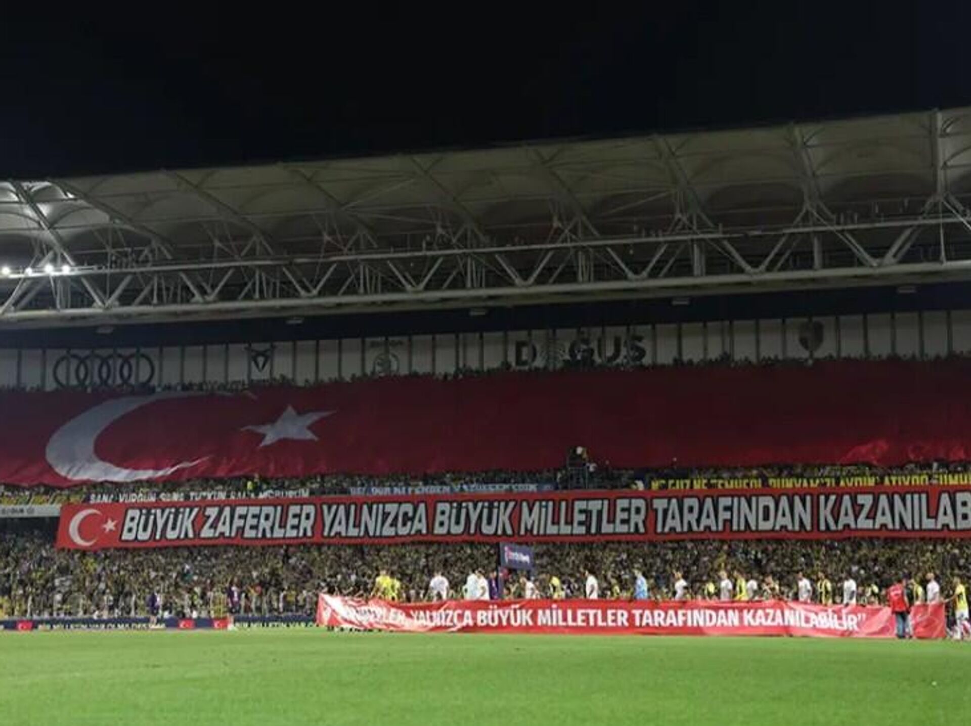 Son dönemde yaşanan olaylar nedeniyle sarı-lacivertli kulüp, tribünlerdeki taraftarlarına 50 binden fazla Türk bayrağı dağıtacak. TRT Spor'un haberine göre; bayrakların taraftarlara dağıtılmasıyla birlikte stadyumda görsel bir şölen oluşturulması hedefleniyor.