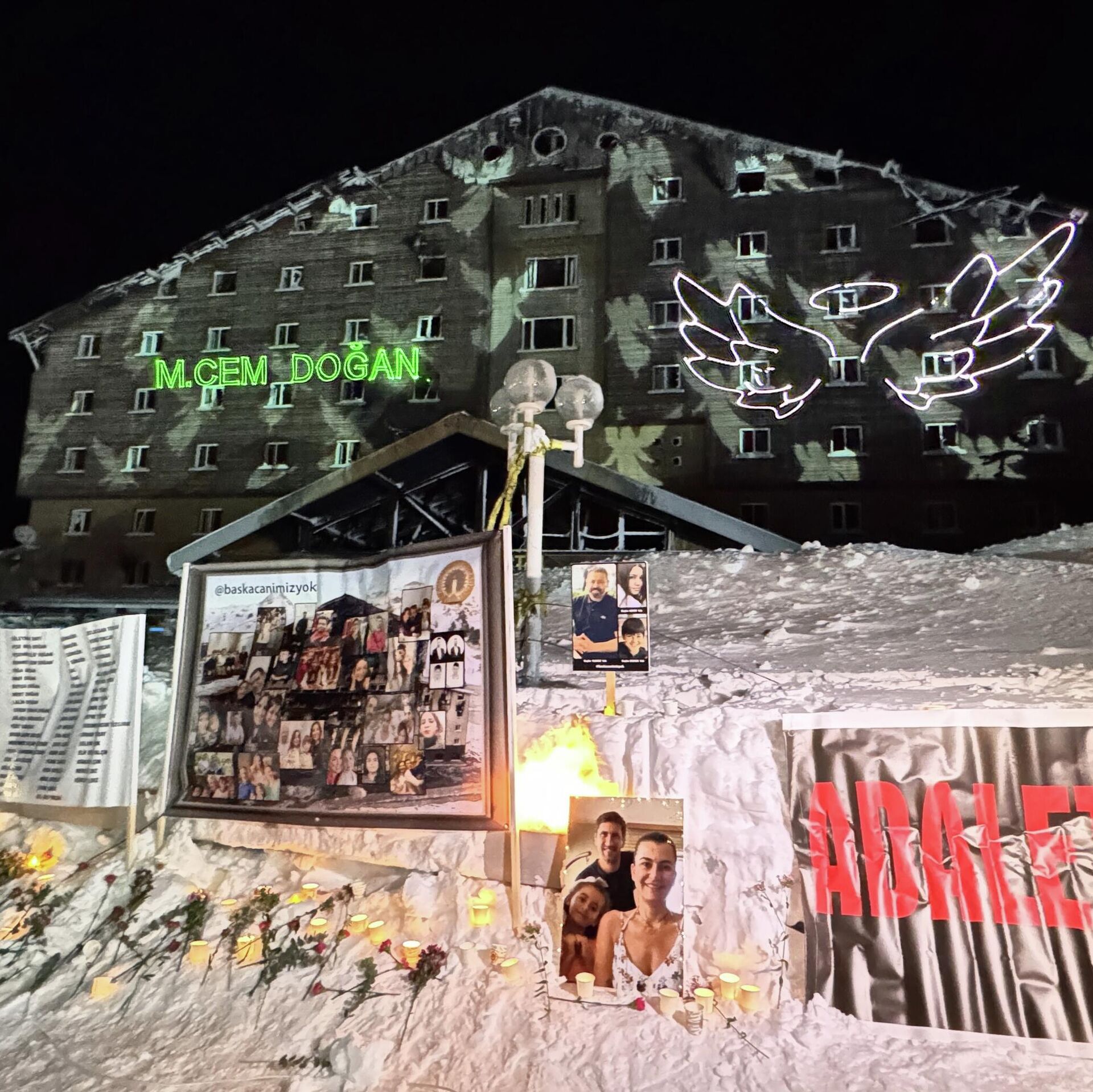 Kartalkaya Kayak Merkezi'ndeki Grand Kartal Otel'de çıkan yangının 1. yılında, hayatını kaybeden 78 kişi için anma programı düzenlendi. Aileler ve vatandaşlar, yangının meydana geldiği saat 03.17'de otelin önünde bir araya geldi.