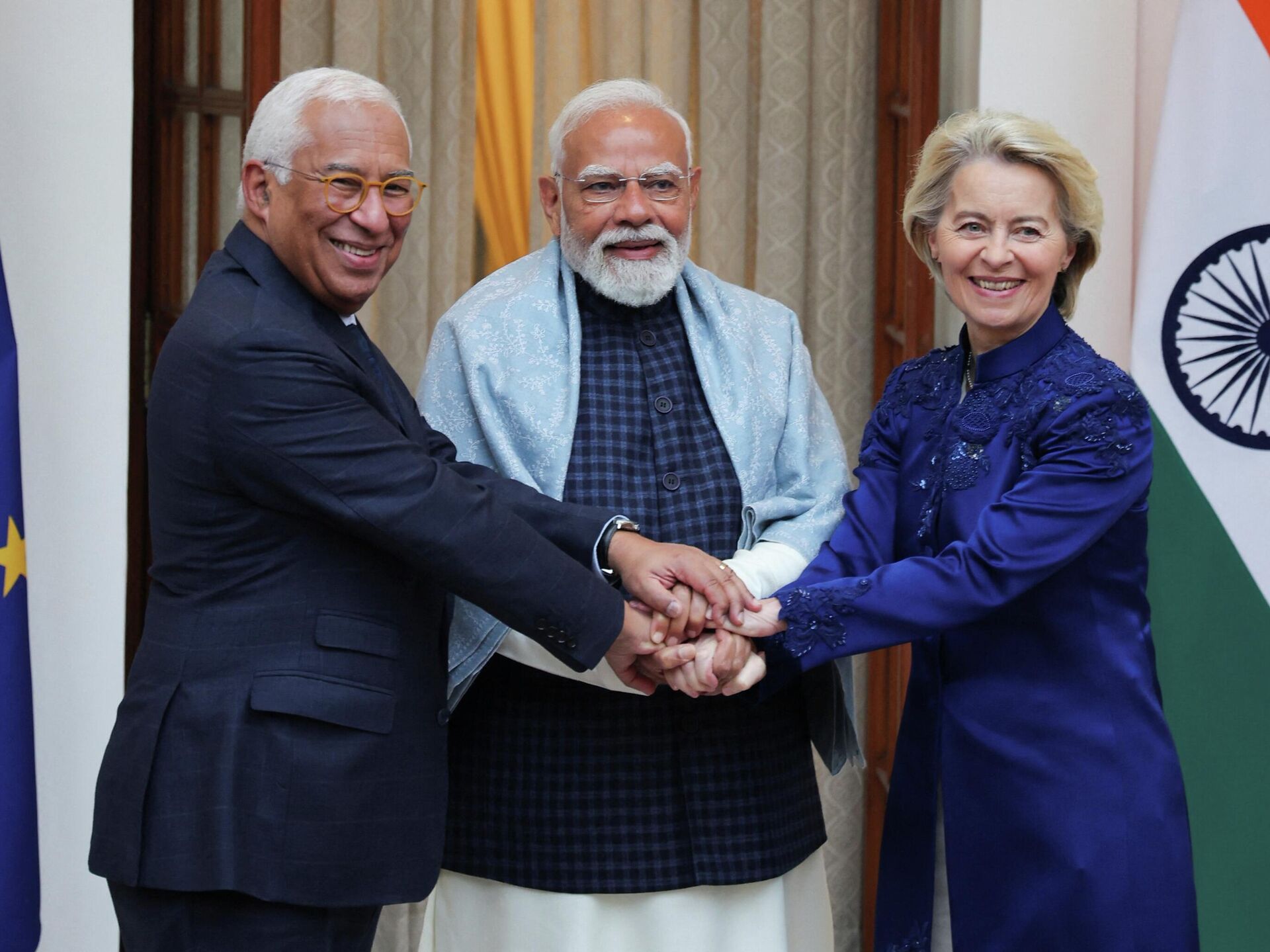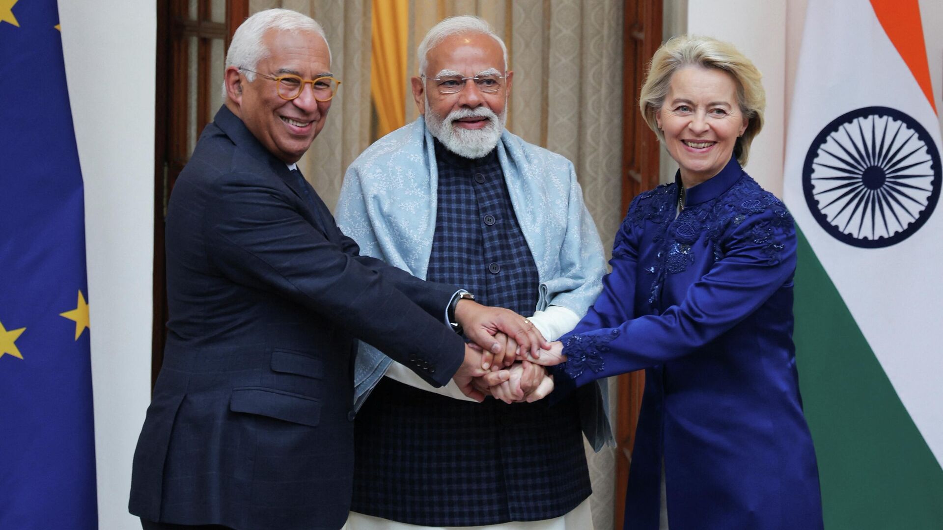 Hindistan Başbakanı Narendra Modi, AB liderleri Costa ve Ursula von Der Leyen ile bugün yapılan görüşmelerin ardından yapılan ortak basın toplantısında Hindistan ve Avrupa Birliği'nin, ABD ile istikrarsız ilişkilere karşı önlem almak amacıyla 'tarihi bir ticaret anlaşmasını' sonuçlandırdığını söyledi.