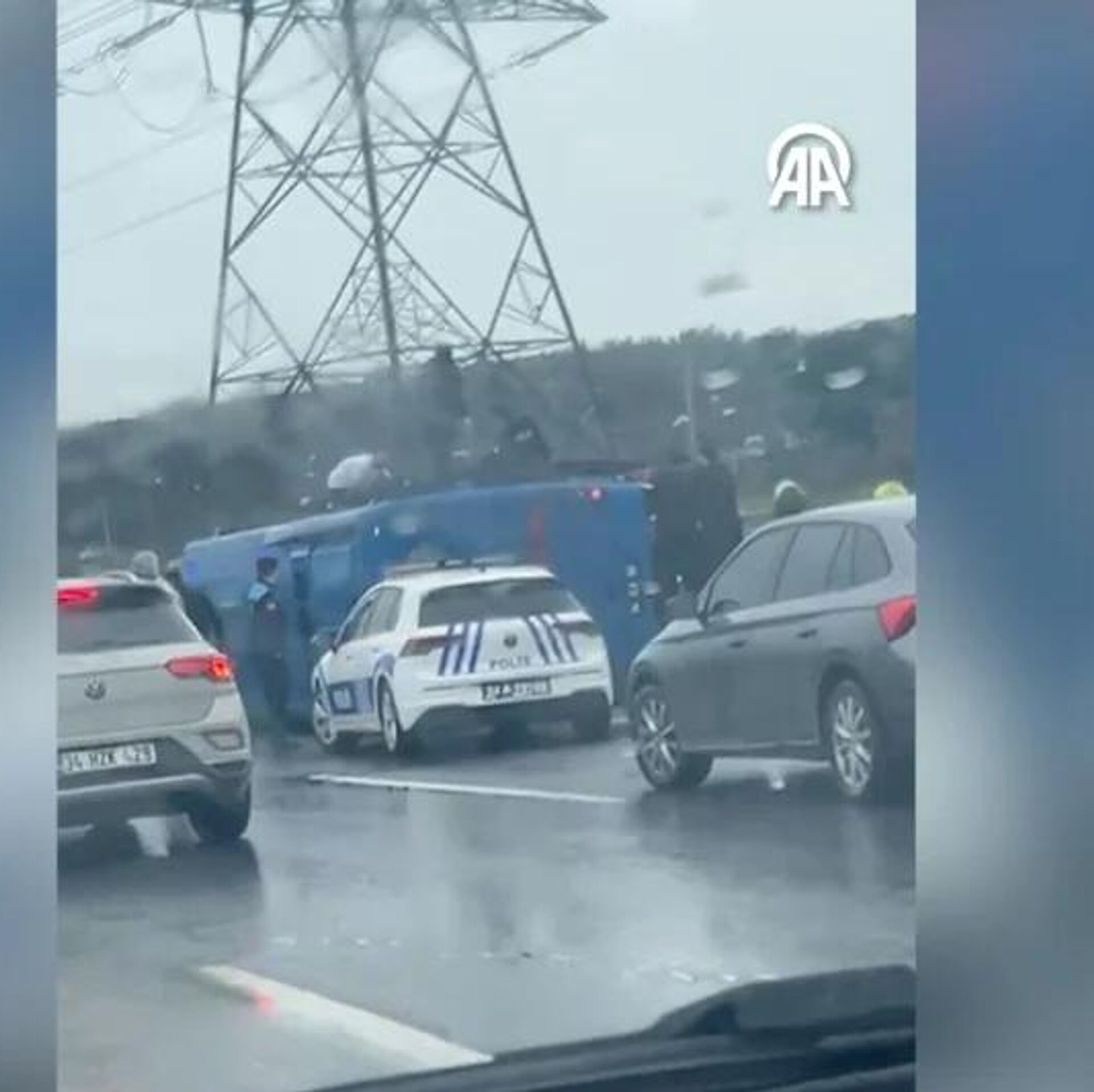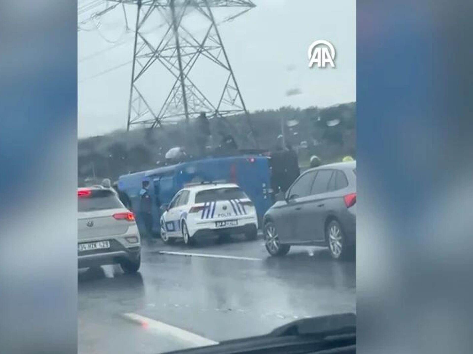 İstanbul'da cezaevi aracı devrildi.