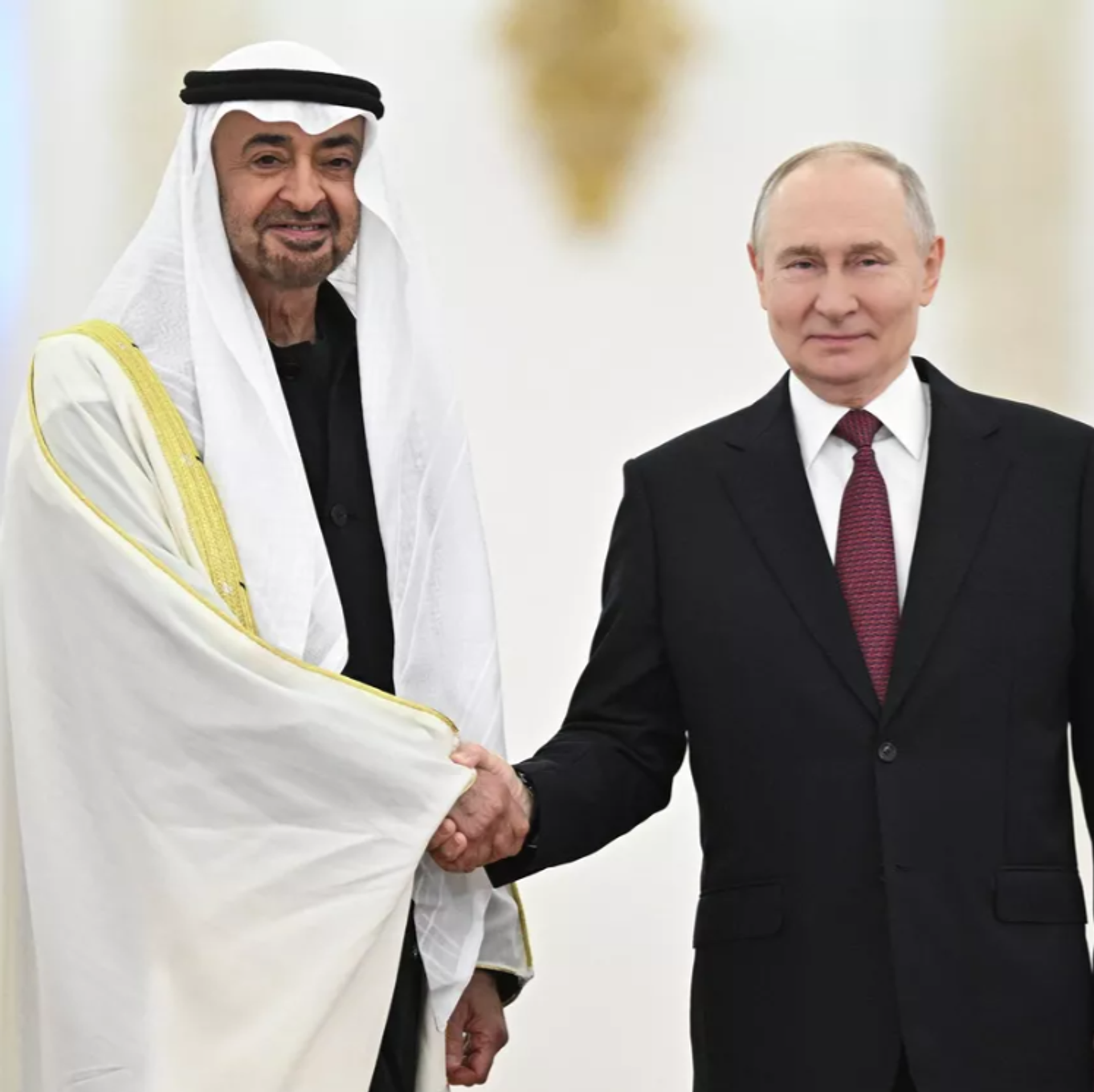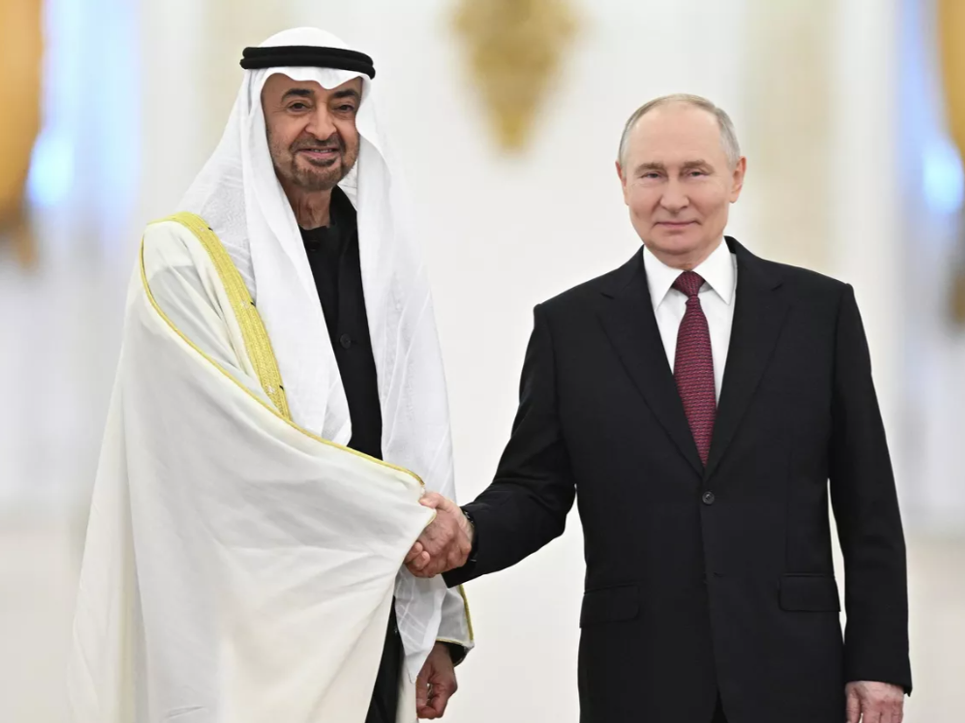 Görüşmenin başında Putin, Moskova'nın Abu Dabi'de Rusya, ABD ve Ukrayna arasında yapılan üçlü görüşmelerin sağlanmasındaki katkılarından dolayı BAE'ye minnettar olduğunu ifade etti: