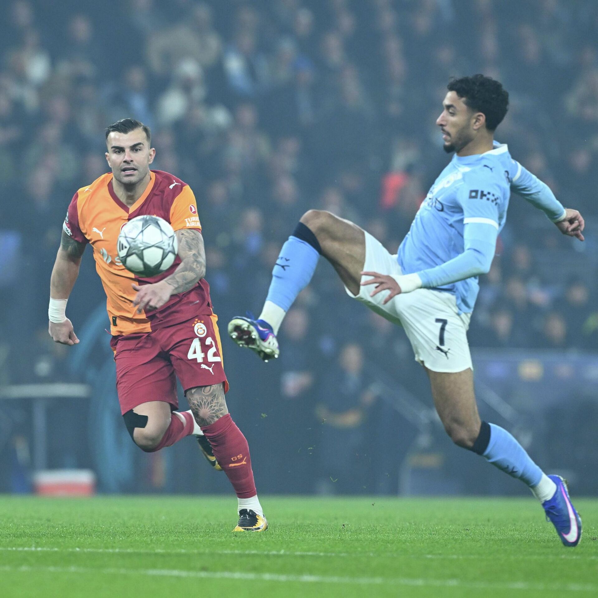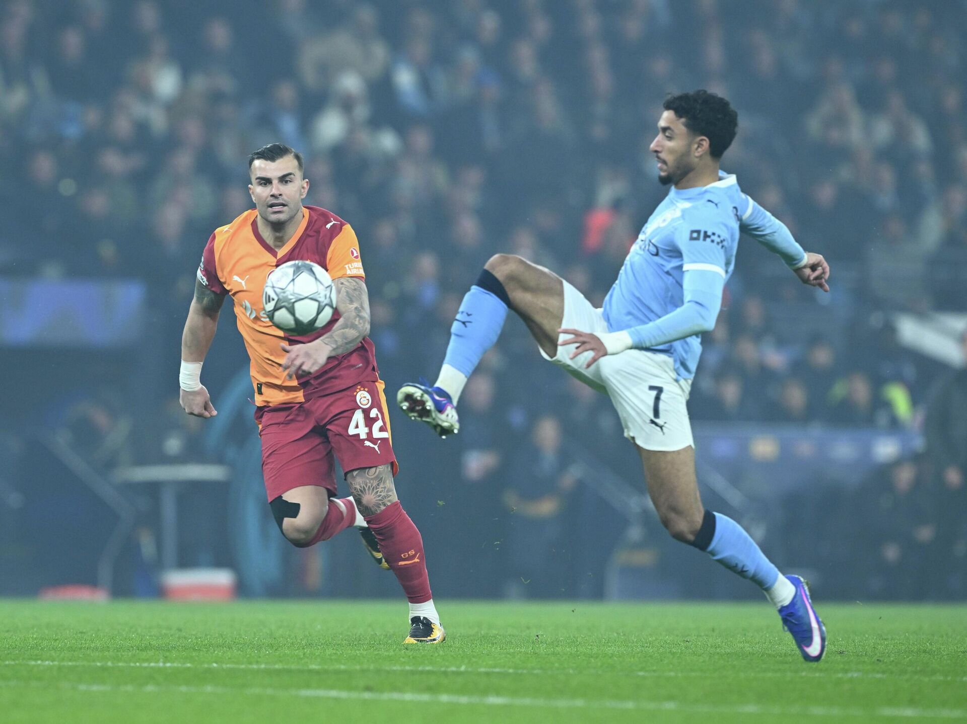 Devler Ligi'nde Galatasaray, İngiliz ekibi Manchester City'e konuk oldu.