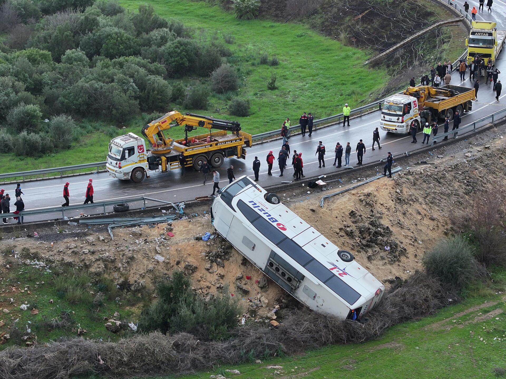Antalya'da yolcu otobüsünün şarampole devrilmesi sonucu can kaybı 9'a yükseldi. 25 yaralıdan 7'sinin durumunun ciddiyetini koruduğu belirtildi. 01.02.2026, Sputnik Türkiye
