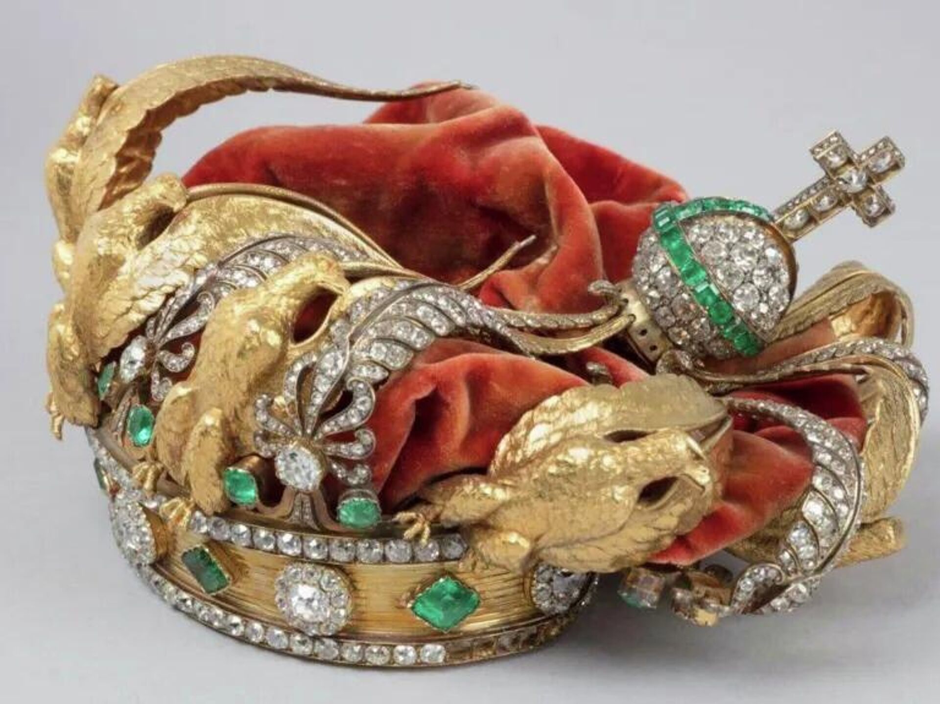 Taç üzerinde bulunan sekiz altın kartaldan birinin kayıp olduğu, buna karşın 56 zümrüdün ve 1.354 elmastan büyük bölümünün korunduğu açıklandı. Yalnızca 10 elmasın eksik olduğu ifade edildi.