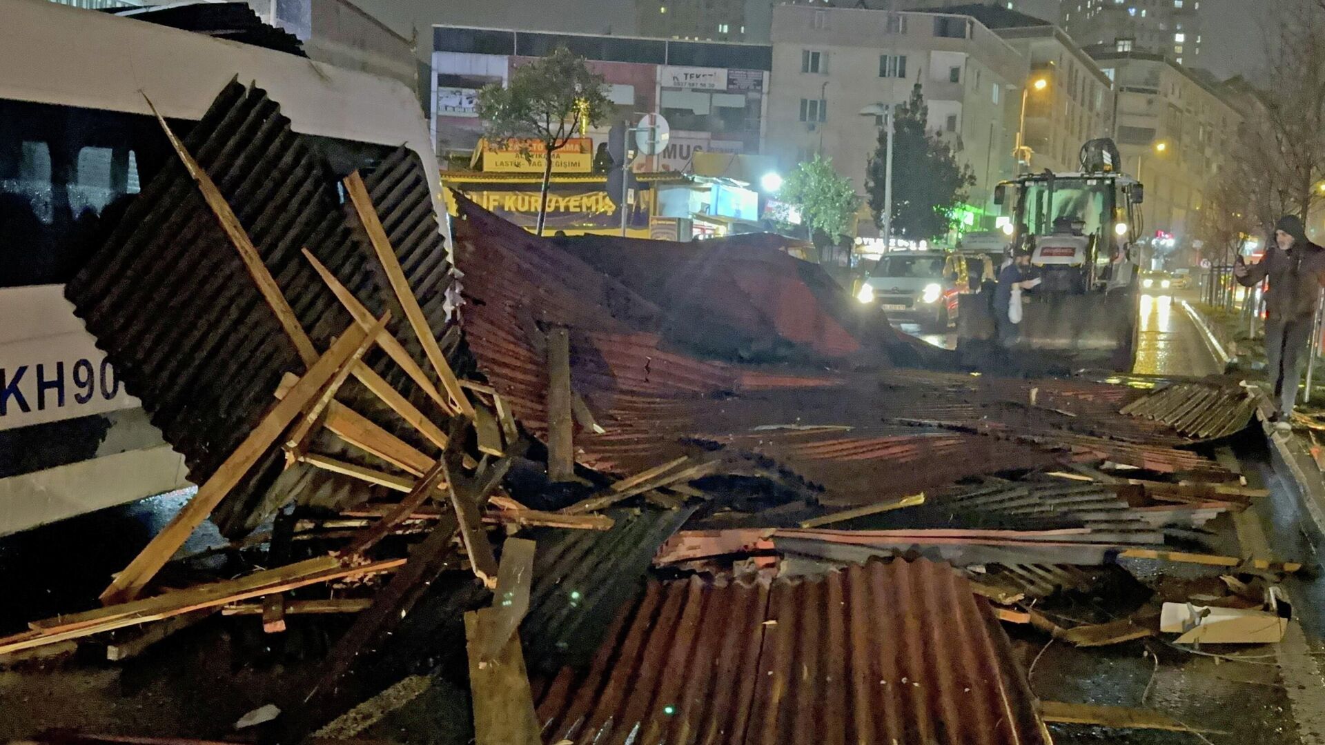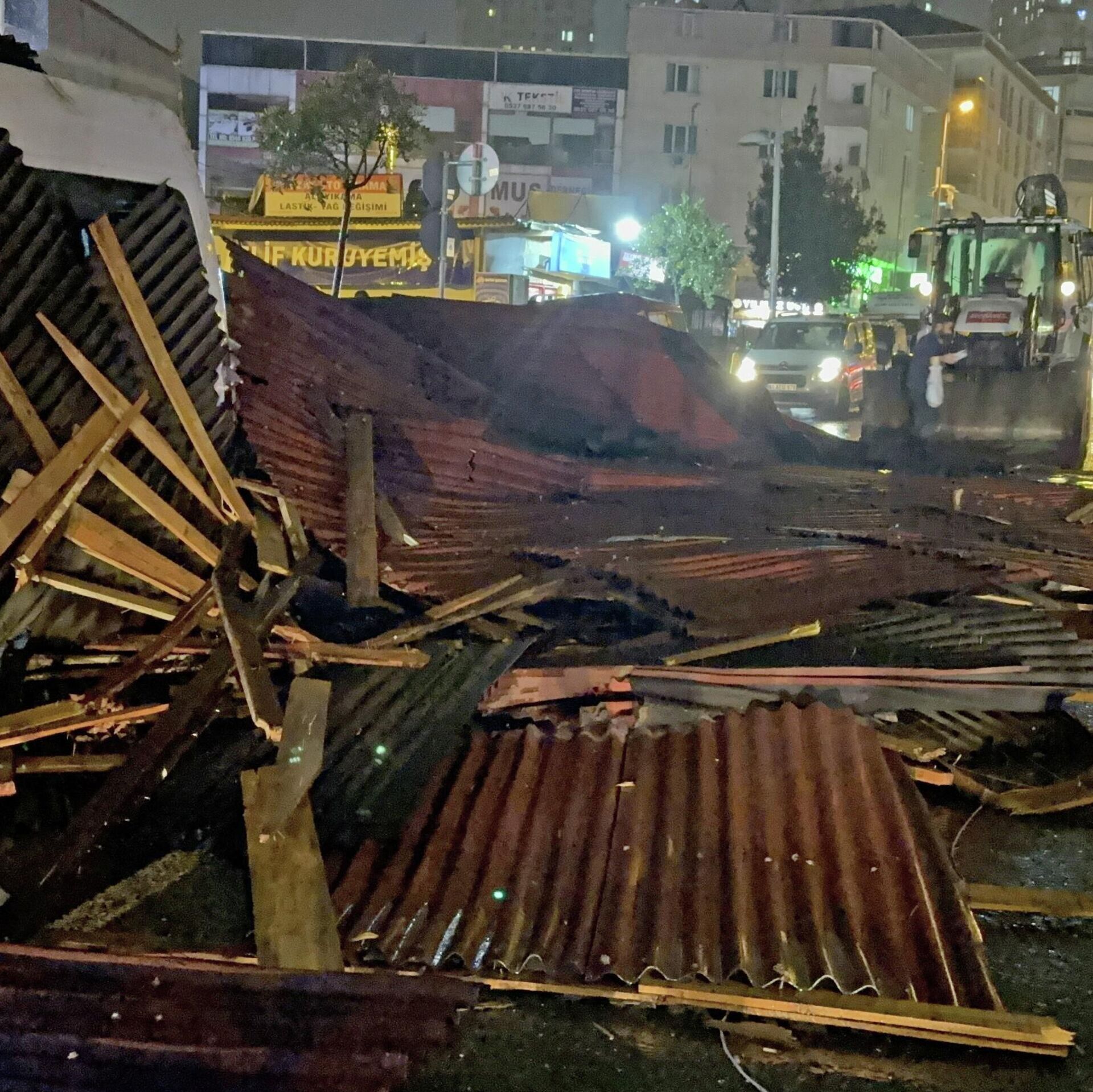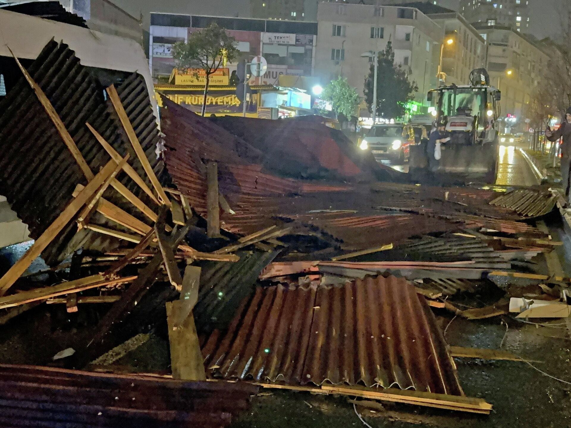 Gazi Caddesi'nde ise bir binanın çatısı, park halindeki 3 aracın üzerine düştü. Olayda araçlar hasar görürken, yol ulaşıma kapandı.