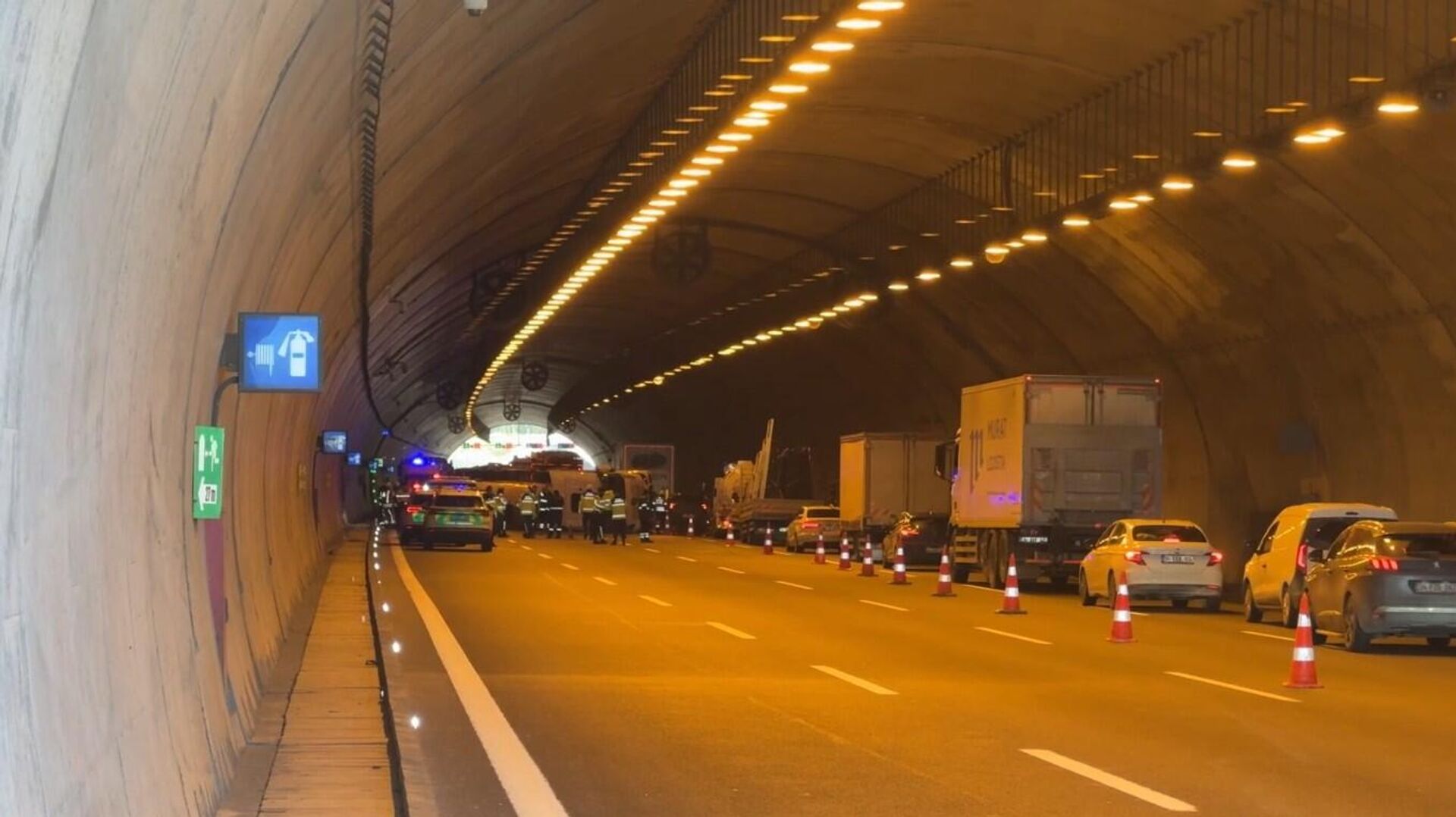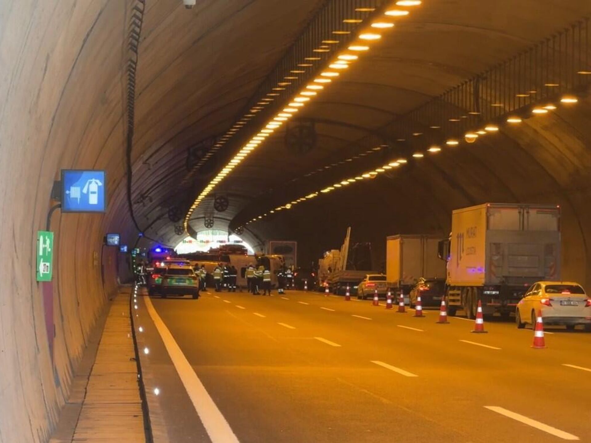 Otoyolun Çatalca 2 Tüneli içerisinde seyir halindeki tanker henüz belirlenemeyen nedenle devrildi.İhbar üzerine bölgeye sağlık, itfaiye ve jandarma ekipleri sevk edildi.3 şerit kapatıldıKaza nedeniyle dört şeritli yolun üç şeridi trafiğe kapatılırken, bölgede uzun araç kuyrukları oluştu.Ekiplerin olay yerindeki çalışmaları sürüyor.