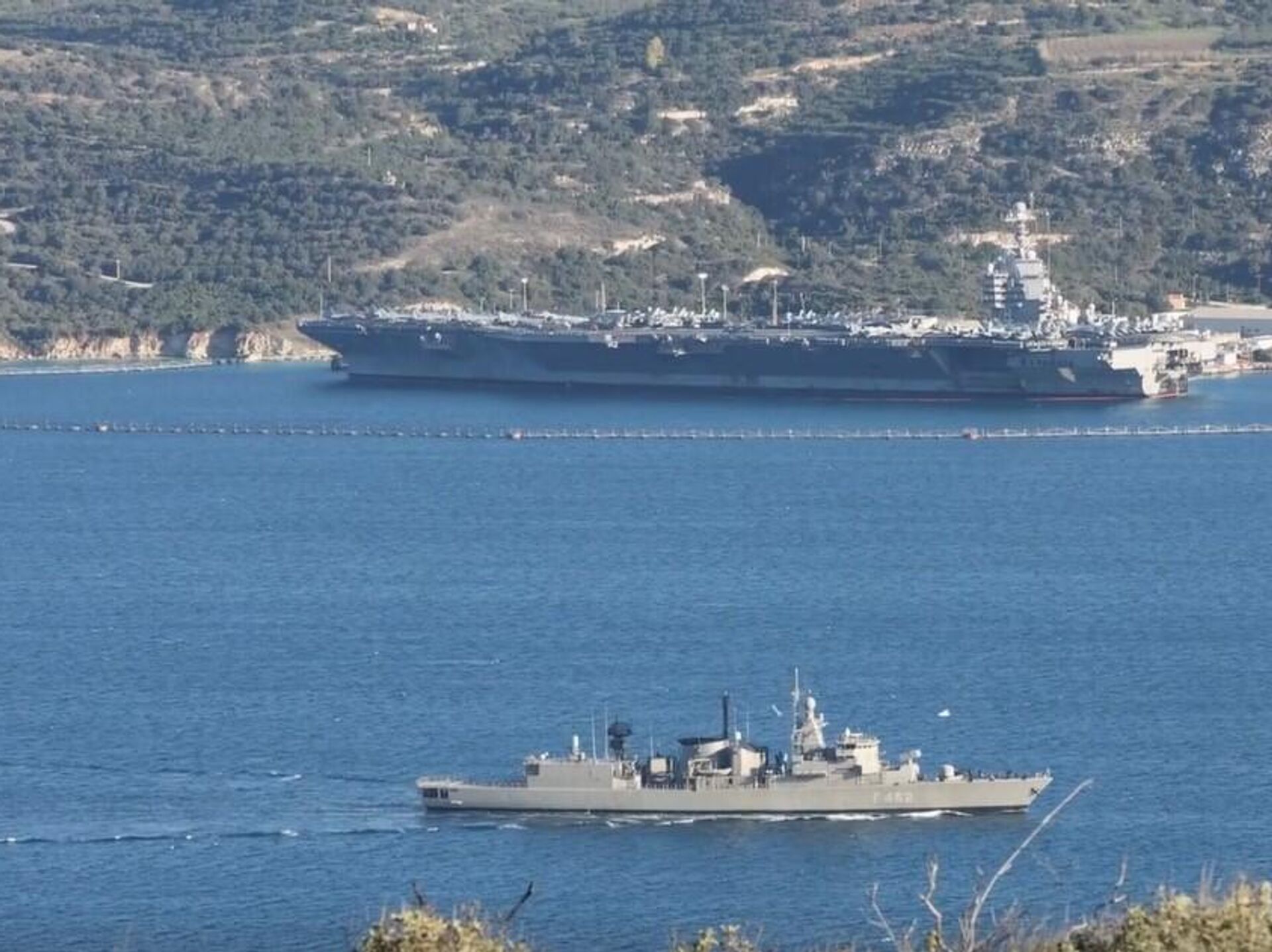Ortadoğu’ya askeri yığınak yapan ABD’ye ait USS Gerald R. Ford uçak gemisi, Yunanistan’ın Girit Adası’na demirledi.