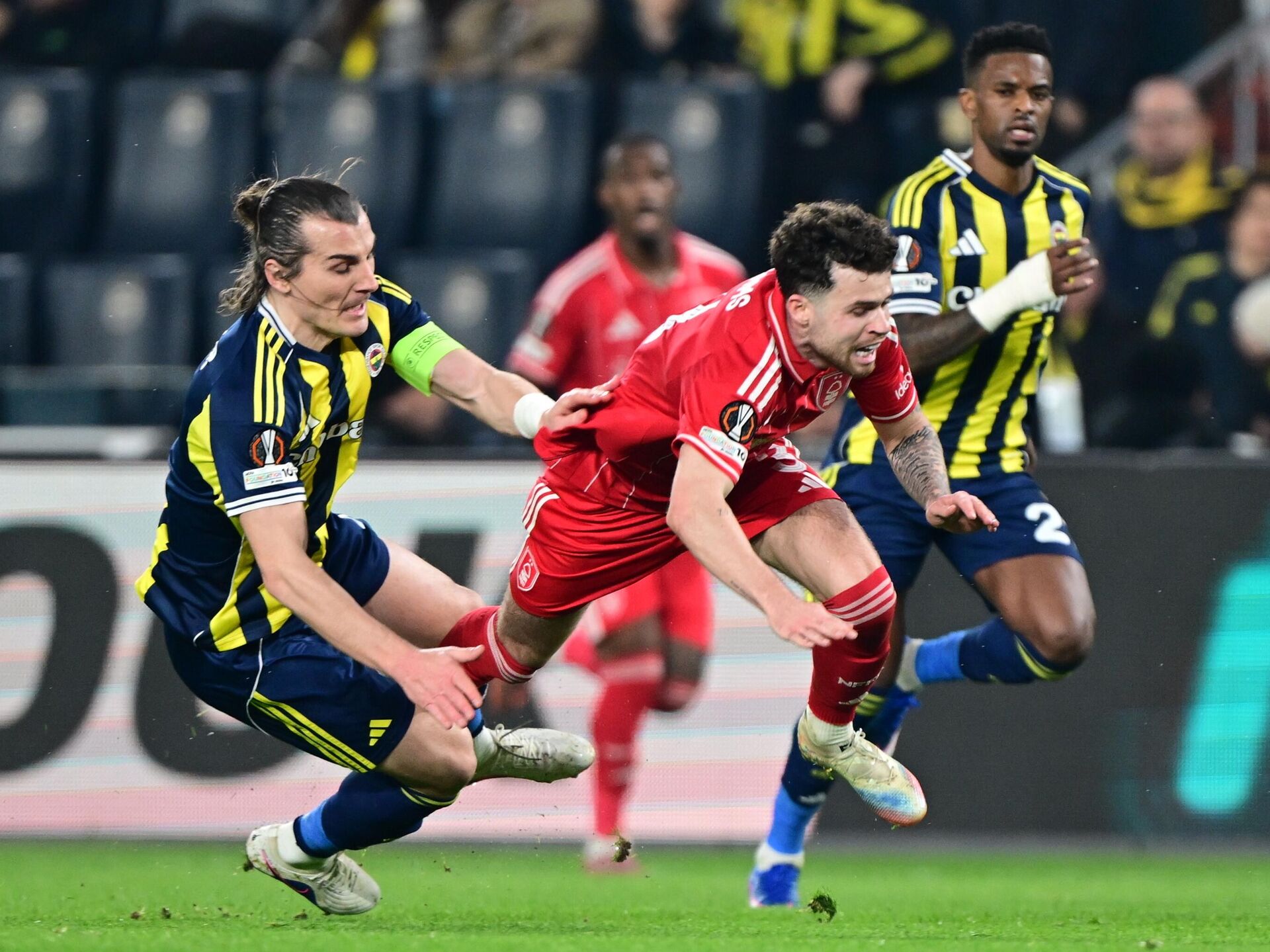 Fenerbahçe, deplasmanda İngiltere temsilcisi Nottingham Forest'le karşı karşıya geldi. Karşılaşmanın ilk yarısında Kerem Aktürkoğlu'nun 22. dakikada attığı golle sarı-lacivertliler 1-0 öne geçti. İkinci yarıya hızlı başlayan Fenerbahçe, 46. dakikada Kerem’in penaltı golüyle farkı ikiye çıkardı. Nottingham Forest, 68. dakikada Hudson-Odoi’nin golüyle farkı 1’e indirdi; ancak skor ilerleyen dakikalarda değişmeyince Fenerbahçe, Kadıköy’de 3-0 kaybettikleri rakibini İngiltere’de 2-1 yense de turu geçemedi.