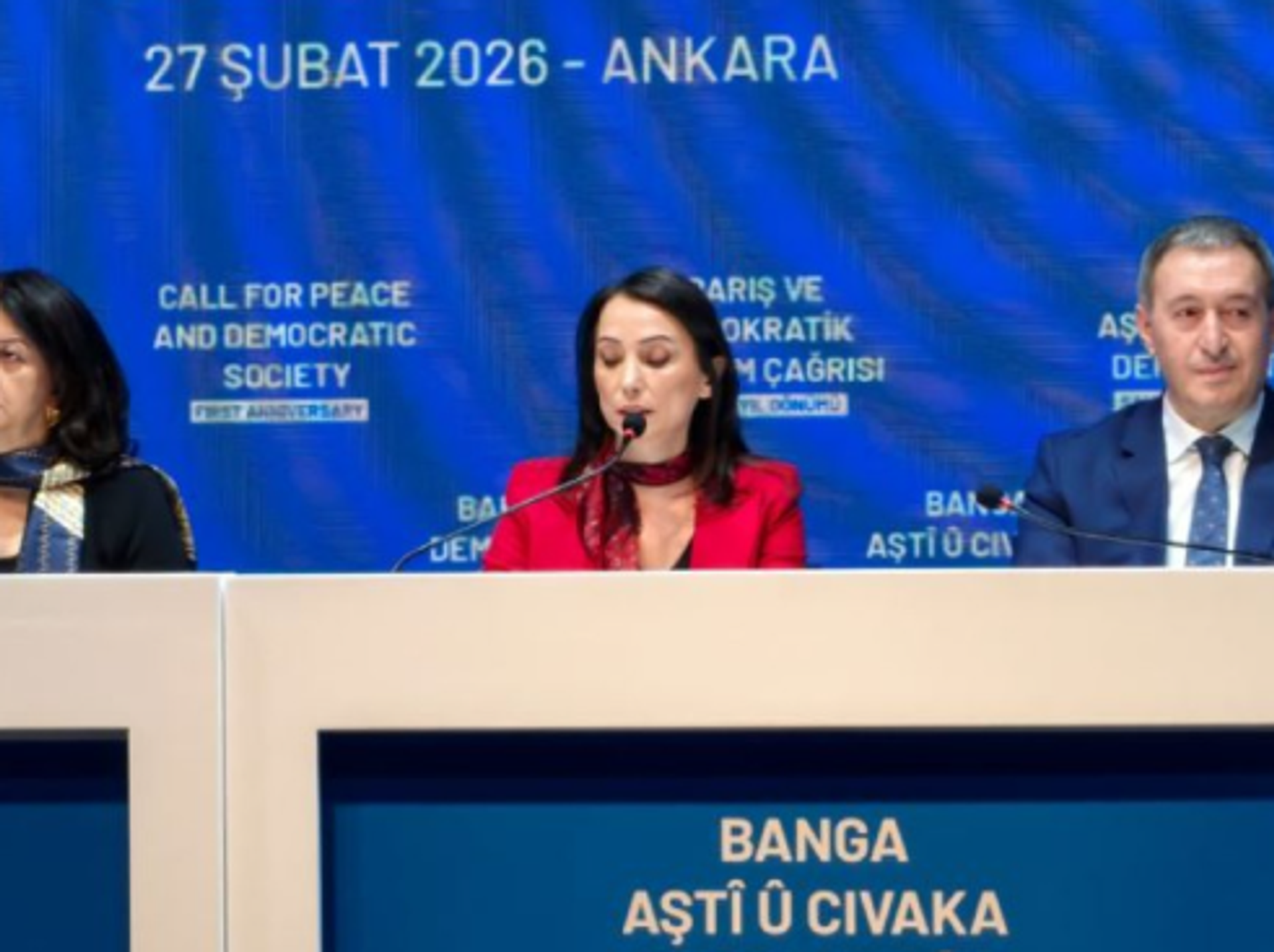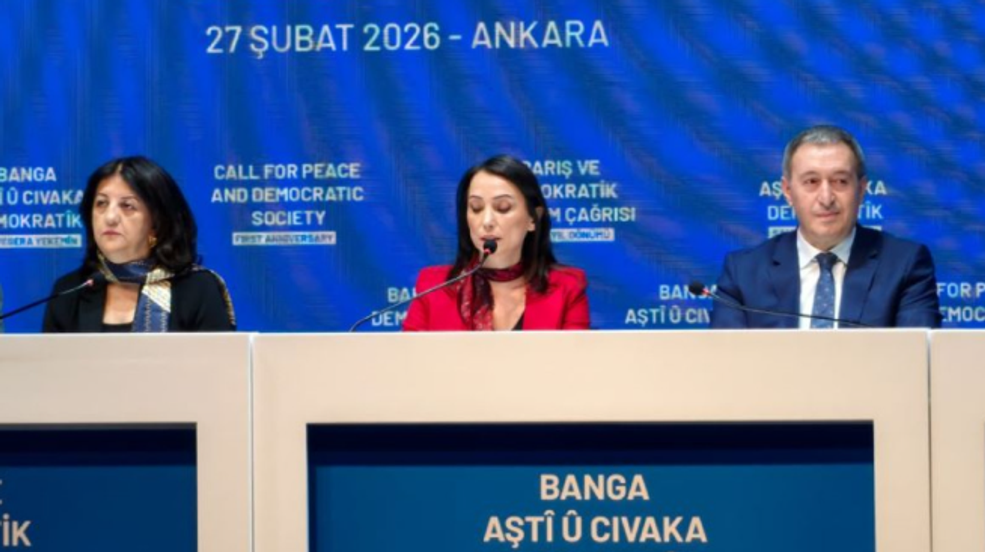 Abdullah Öcalan’ın PKK’ya yönelik ‘Kongre toplayıp kendini feshetme ve silah bırakma’ çağrısının üzerinden bir yıl geçti. Öcalan’ın açıklamasının yıl dönümünde ‘Barış ve Demokratik Toplum Çağrısı’ başlıklı etkinlik gerçekleştiren DEM Parti, Öcalan’ın İmralı’dan gönderdiği mesajı okudu.