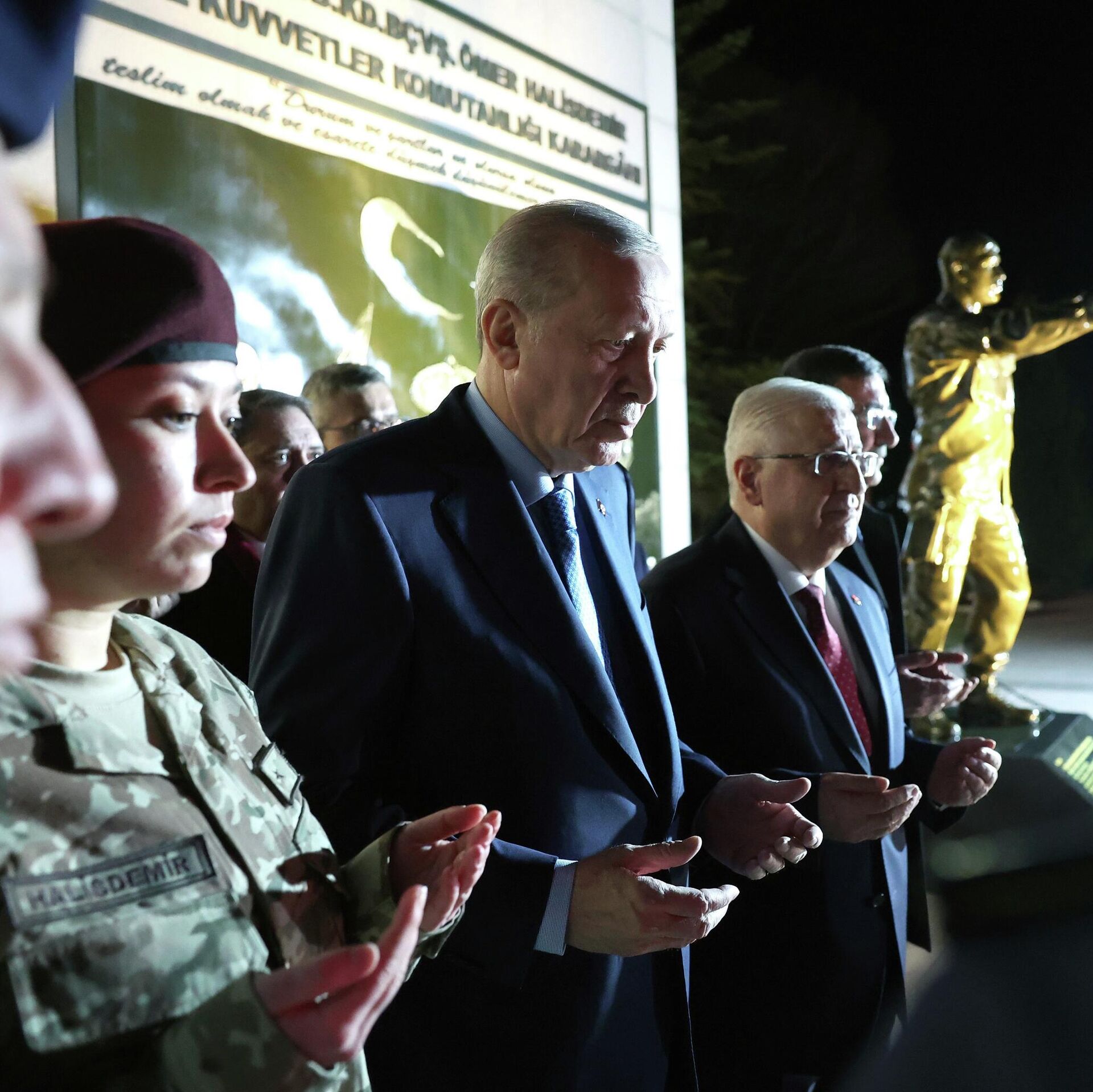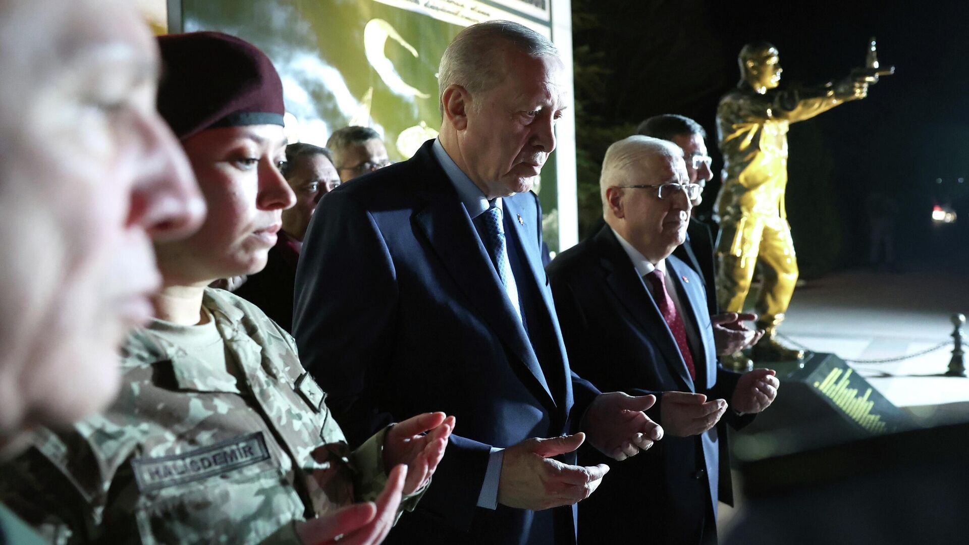 Cumhurbaşkanı Recep Tayyip Erdoğan, 15 Temmuz darbe girişimi sırasında hayatını kaybeden Ömer Halisdemir anıtı önünde dua etti. 04.03.2026, Sputnik Türkiye