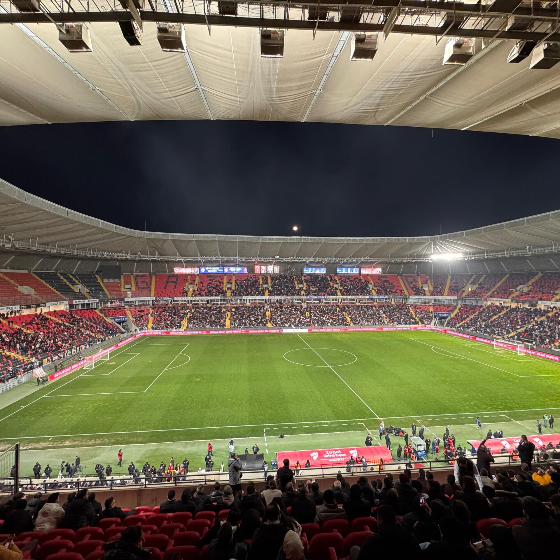 Ziraat Türkiye Kupası C Grubu 4. haftasındaki Gaziantep FK-Fenerbahçe maçı, stattaki ışıklandırma sorunu nedeniyle başlayamadı.Gaziantep Büyükşehir Belediye Stadı'nda saat 20.30'da başlaması gereken karşılaşma, ışıklandırma sistemindeki sorun nedeniyle başlayamadı. Müsabakanın hakemi Adnan Deniz Kayatepe, iki takımın kaptanını yanına çağırarak durumu anlattı.Statta karşılaşmanın gecikmeli olarak başlayacağı anons edildi.Stadyum ışıklarındaki sorunun giderilmesinin ardından takımlar yeniden ısınmaya çıktı.