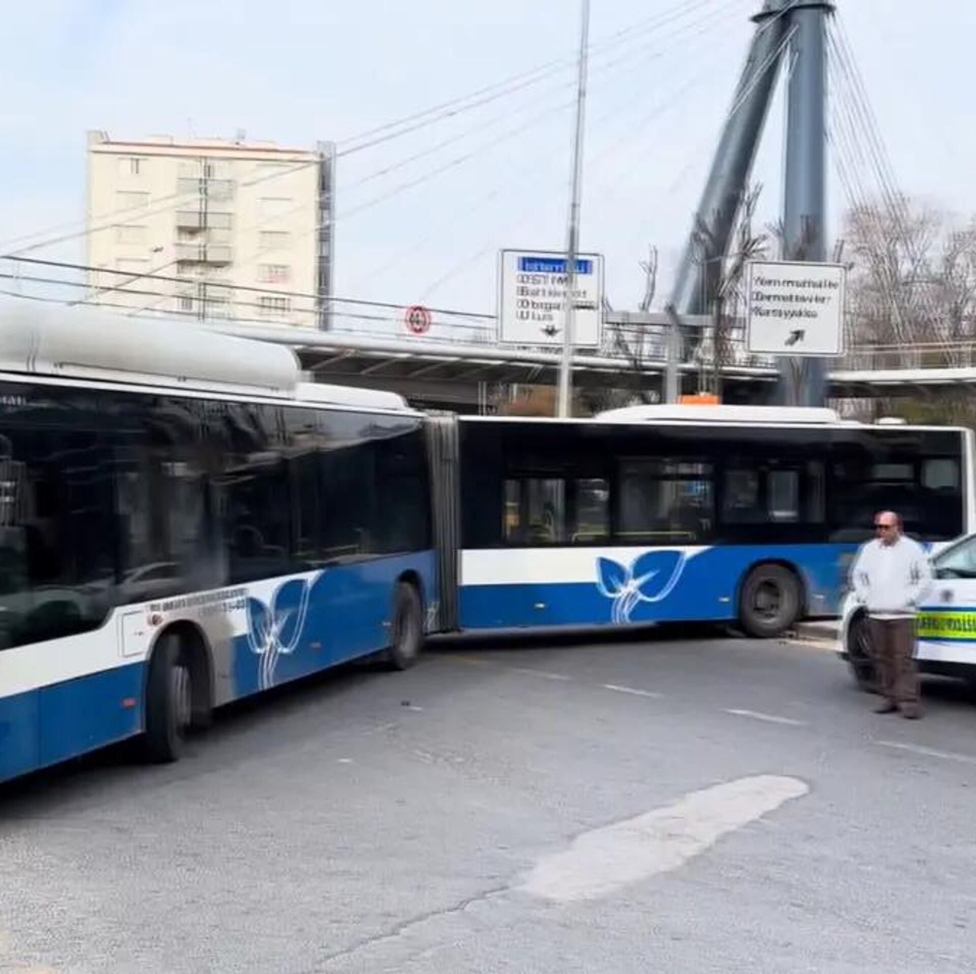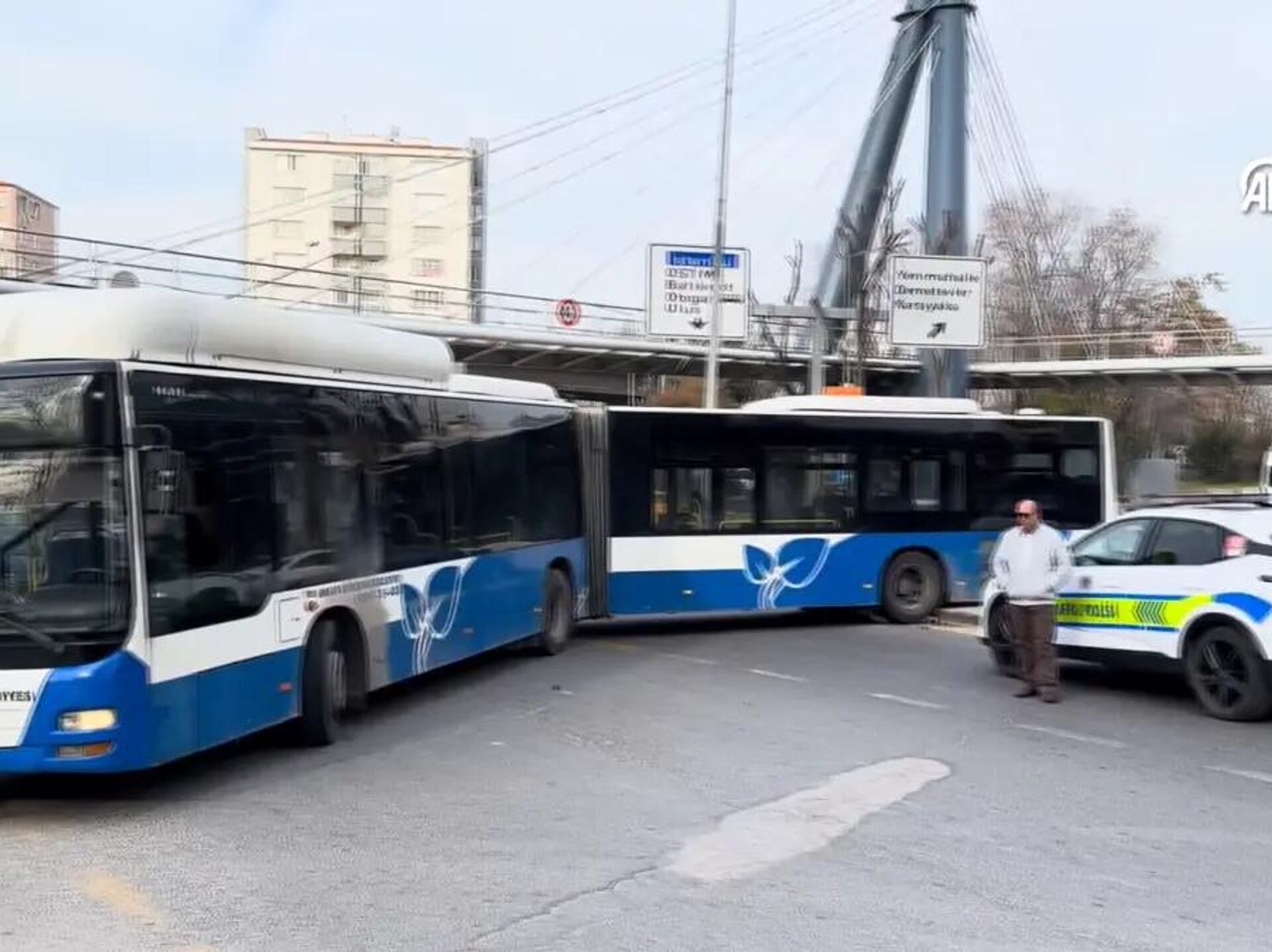 Ankara'nın Yenimahalle ilçesinde refüj üzerinden dönüş yapmaya çalışırken askıda kalan belediye otobüsü nedeniyle ulaşımda aksama yaşandı. 05.03.2026, Sputnik Türkiye