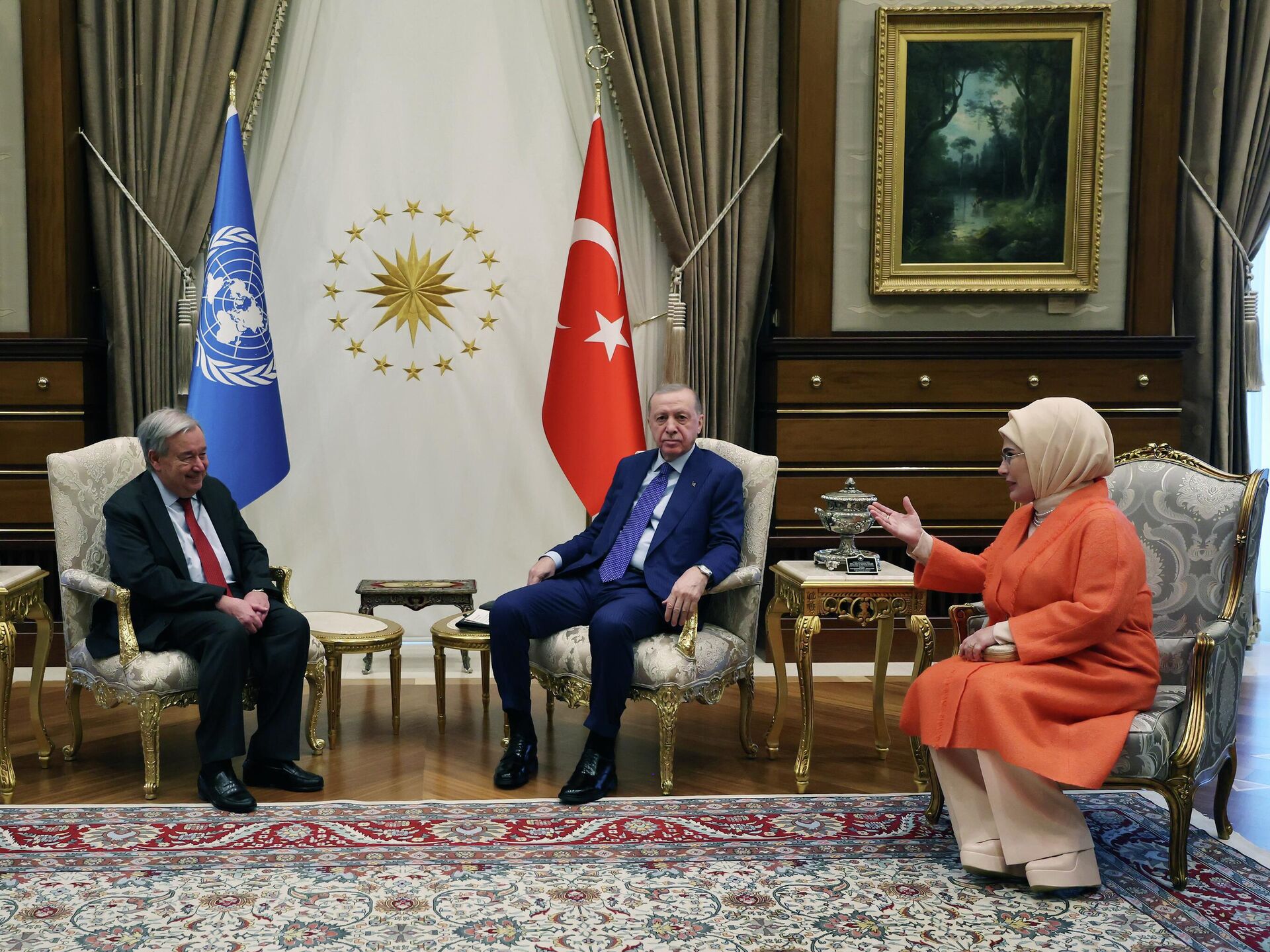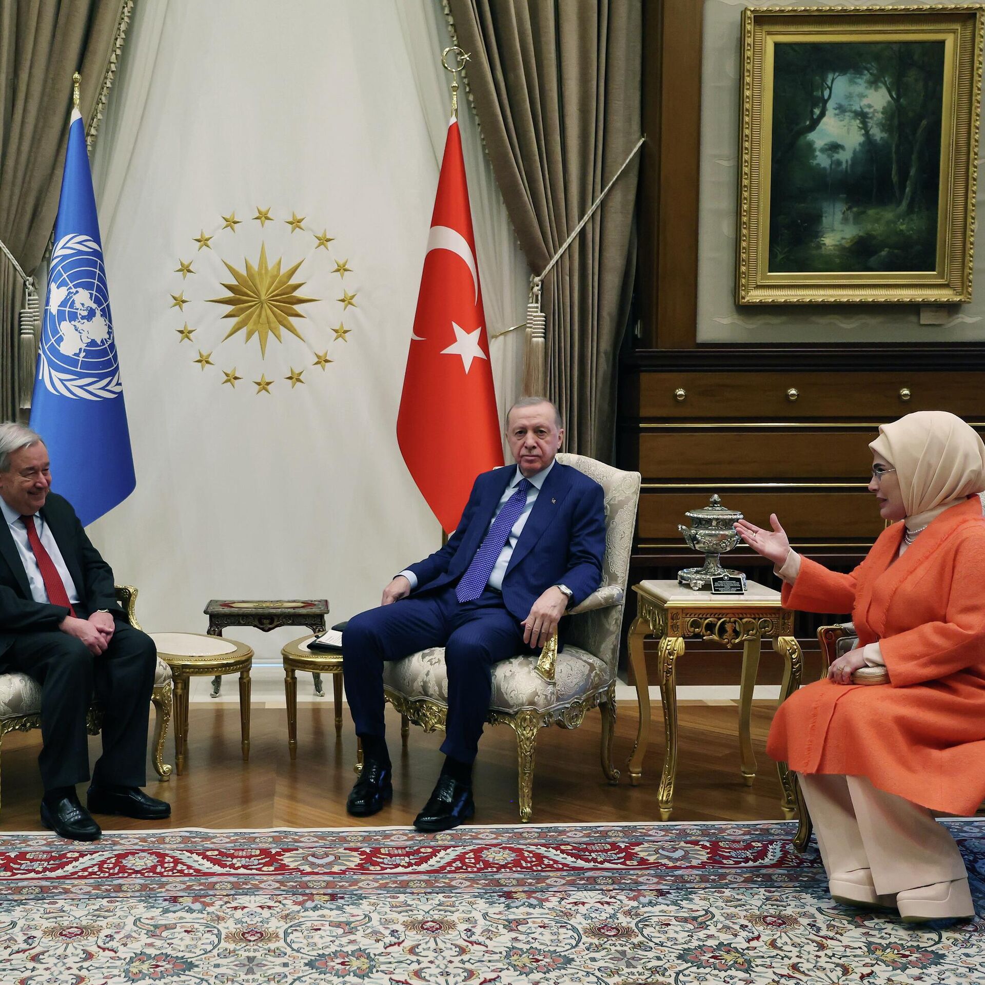 Cumhurbaşkanı Recep Tayyip Erdoğan, Birleşmiş Milletler (BM) Genel Sekreteri Antonio Guterres'le bir araya geldi. 12.03.2026, Sputnik Türkiye