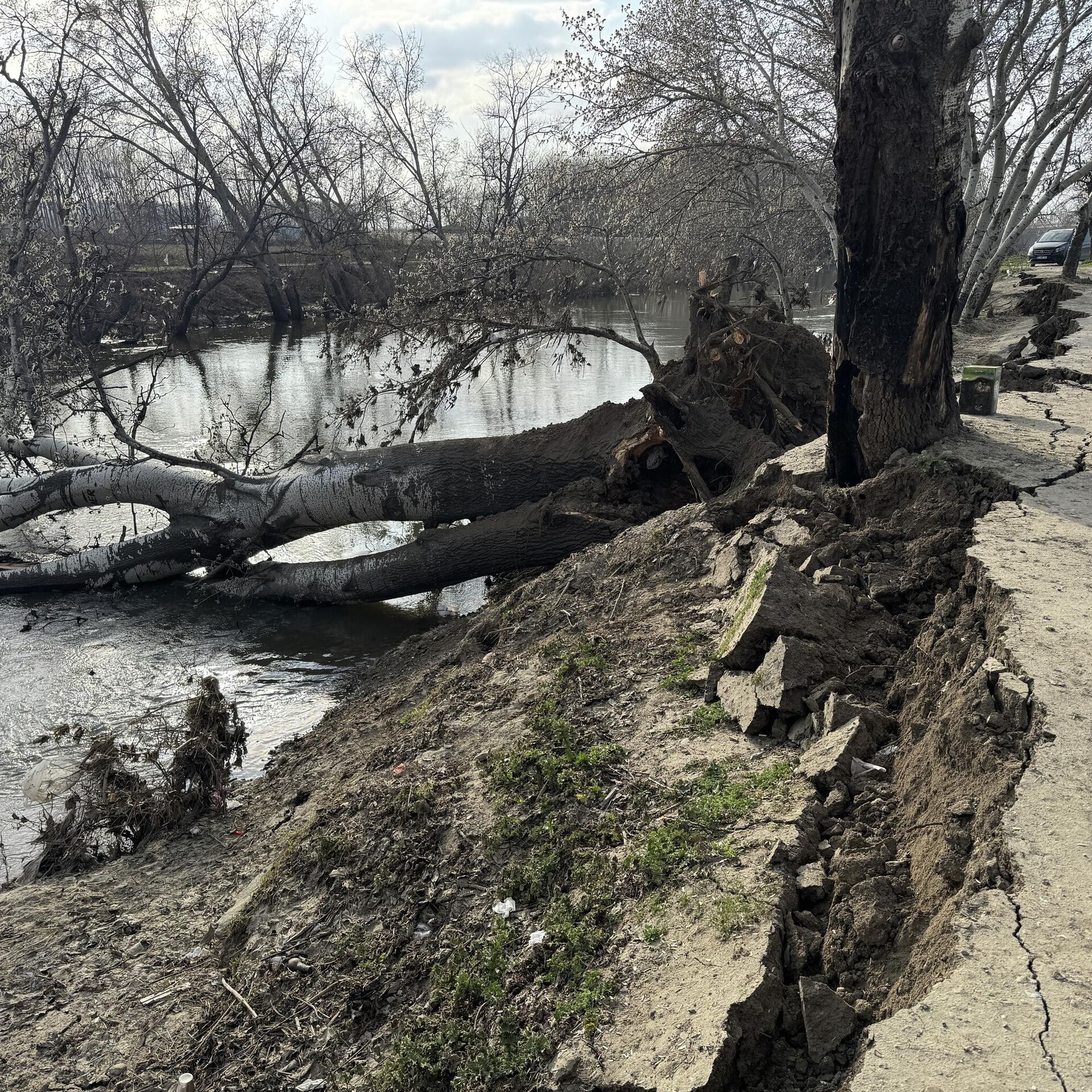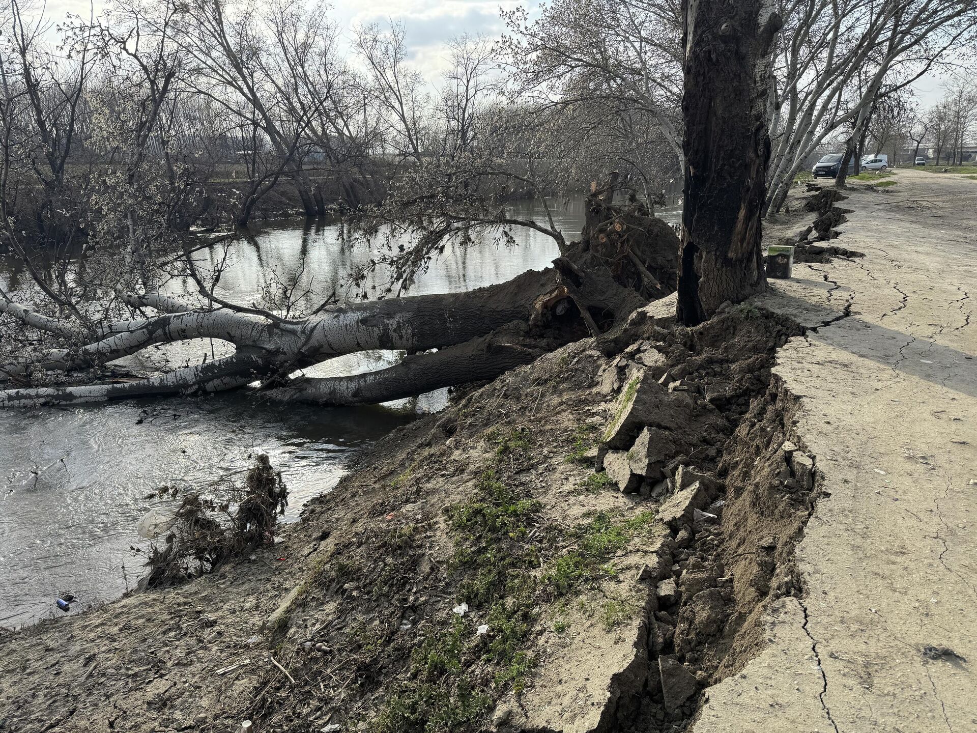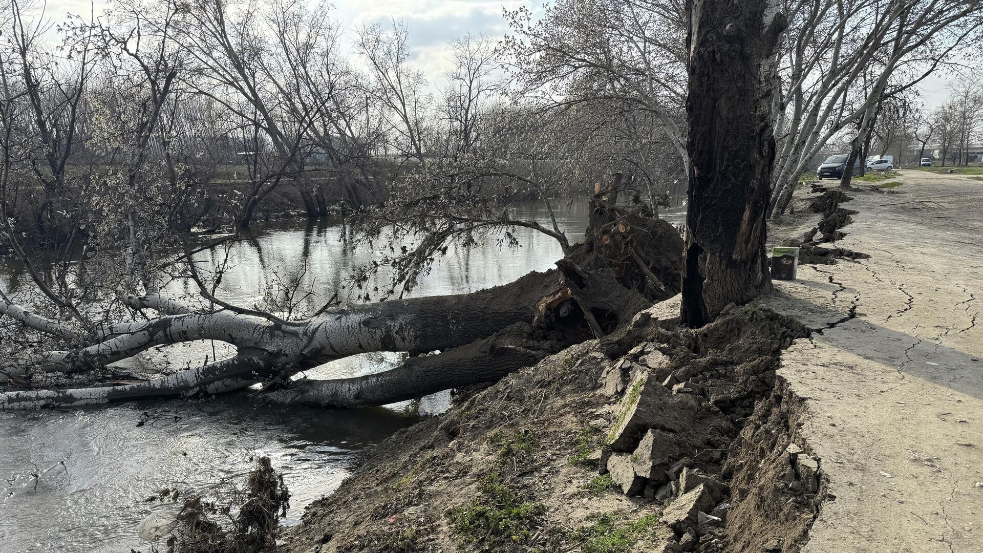 Tunca Nehri kıyısında toprak kayması meydana geldi. Bölgede bulunan bir ağaç nehre devrildi. 15.03.2026, Sputnik Türkiye