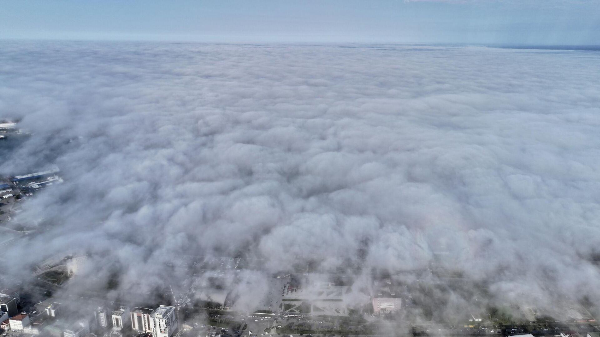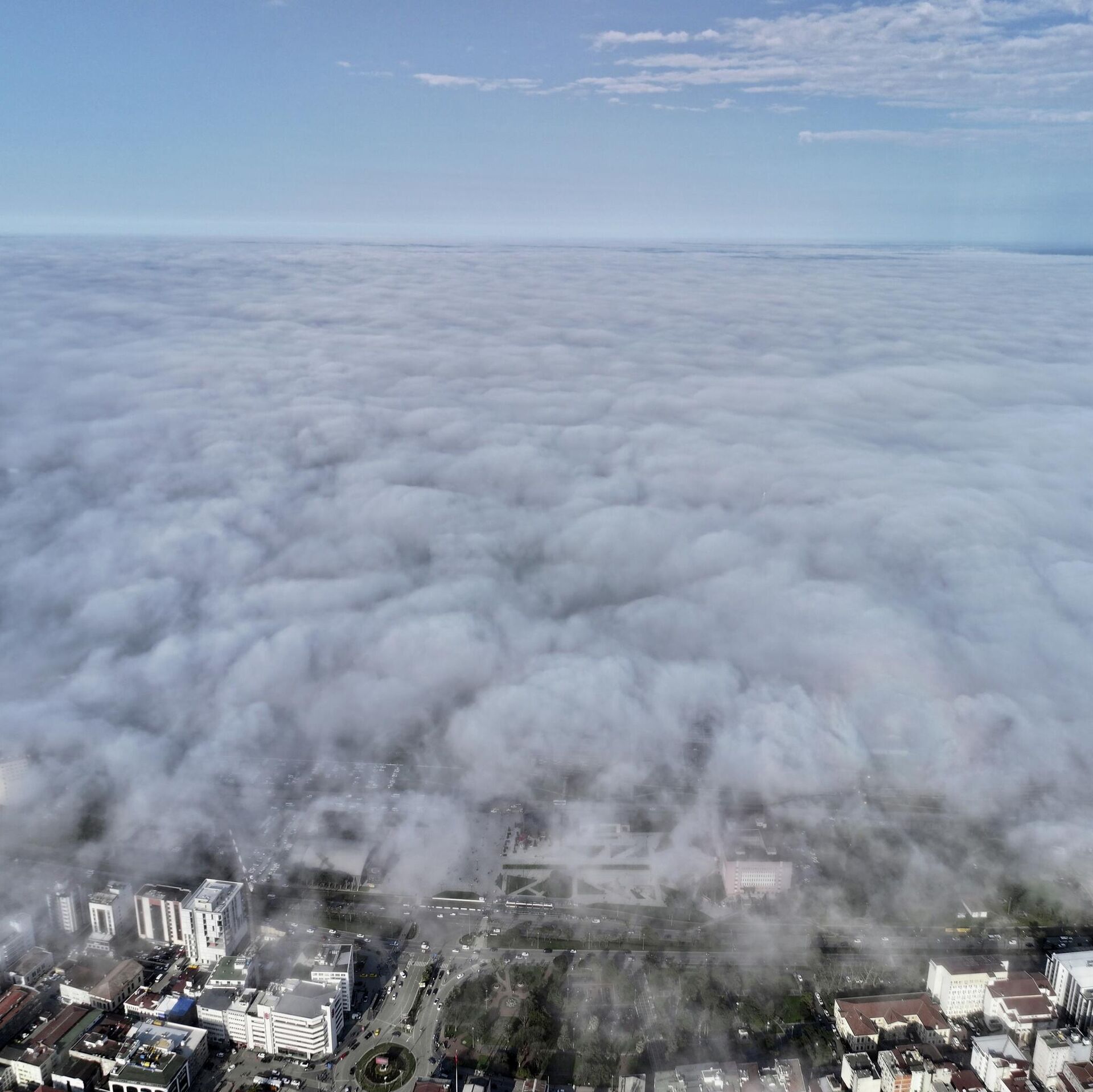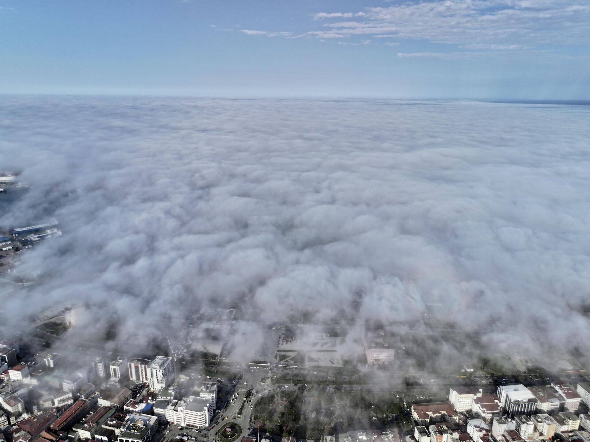 Samsun'da Atakum ve İlkadım ilçelerinde Karadeniz'in üzerini kaplayan sis denizi dronla görüntülendi. 02.04.2026, Sputnik Türkiye