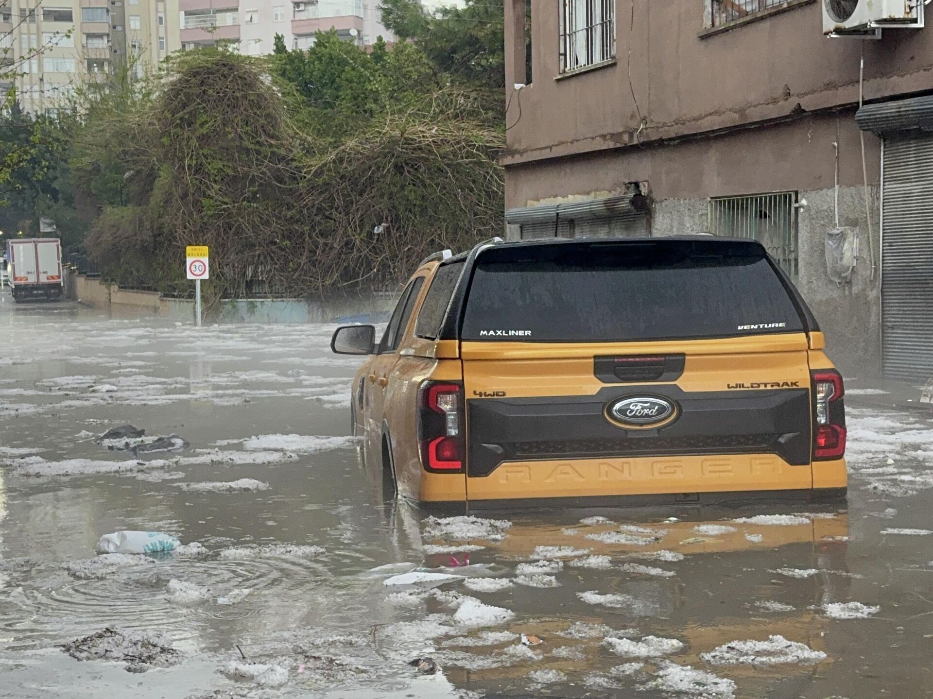 © AA / Yusuf KoyunAdana'da etkili olan sağanak ve dolu nedeniyle cadde ve sokaklarda su birikintileri oluştu
