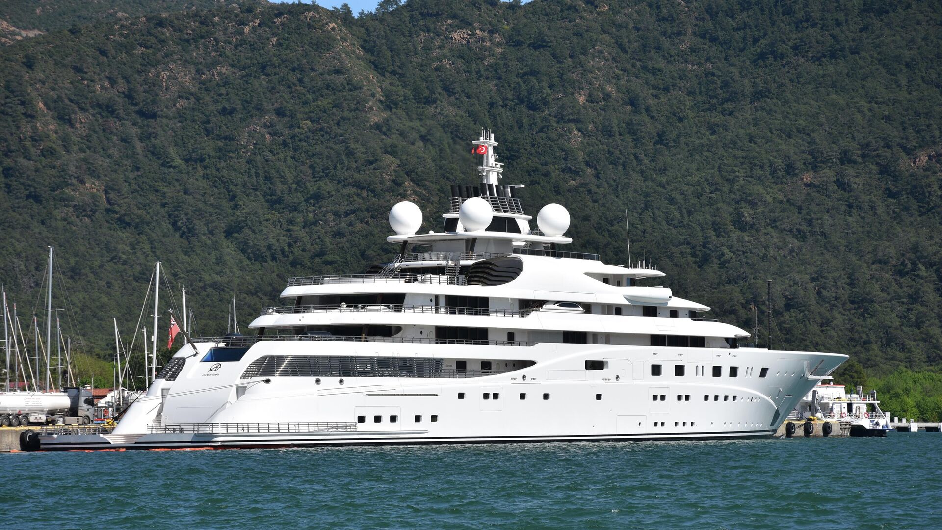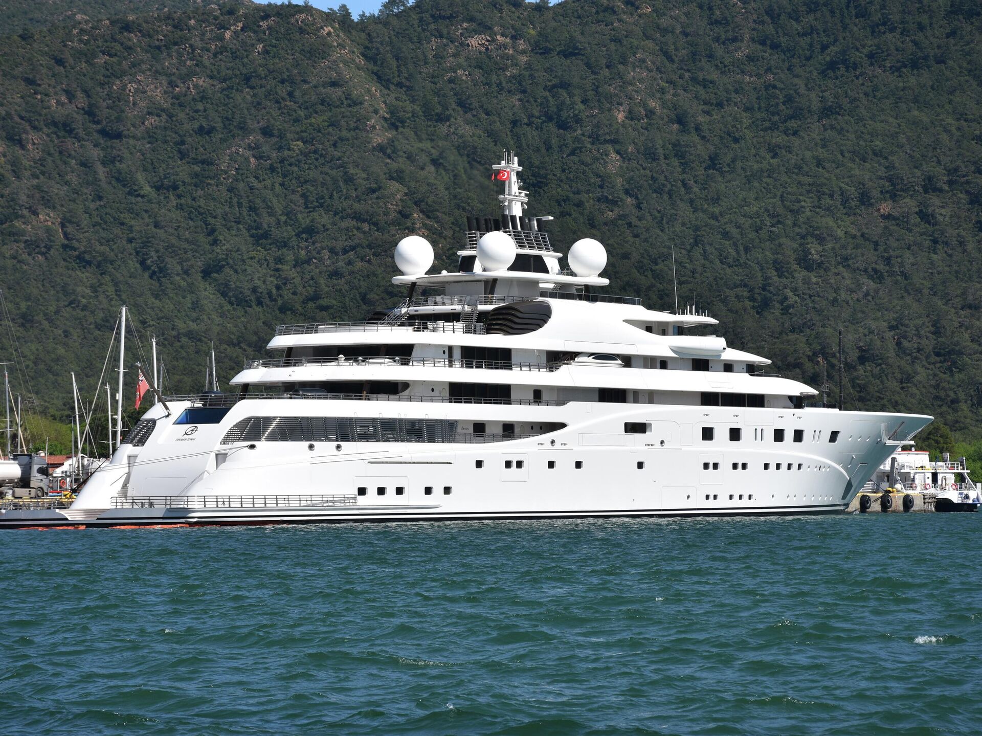 17:46 06.04.2026 (güncellendi: 17:48 06.04.2026) Dünyanın en büyük yatları arasında gösterilen 'A+' isimli dev tekne, Marmaris Limanı’nda büyük rıhtıma yanaştırıldı. Lüks yata, Aliağa Rafinerisi’nden tankerle getirilen 400 bin litre akaryakıt ikmali yapılırken, bu işlem için yaklaşık 25 milyon 200 bin lira ödendiği öğrenildi.