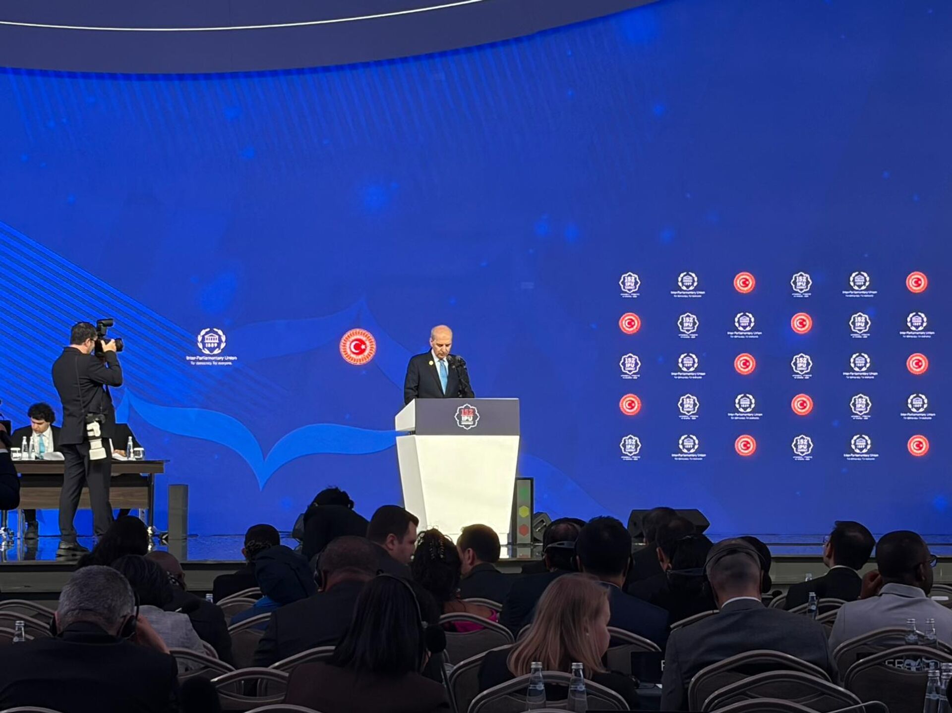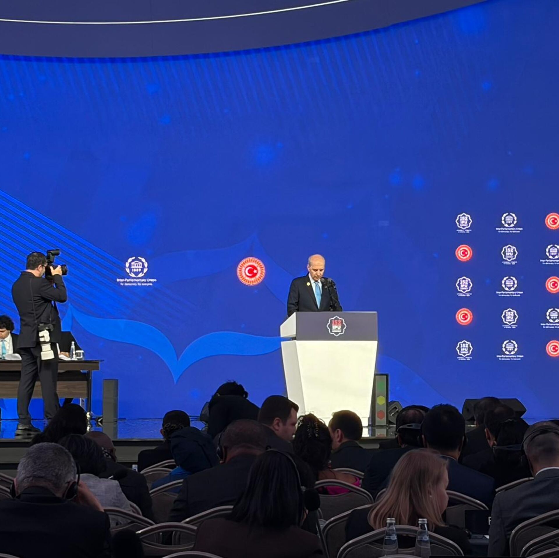 TBMM Başkanı Numan Kurtulmuş, İstanbul’da Parlamentolar Arası Birlik 152. Genel Kurulu kapsamında düzenlenen "Gelecek Nesiller İçin Umudu Yeşertmek, Barışı Sağlamak ve Adaleti Temin Etmek" temalı Genel Kurul Toplantısı'nda konuştu.
