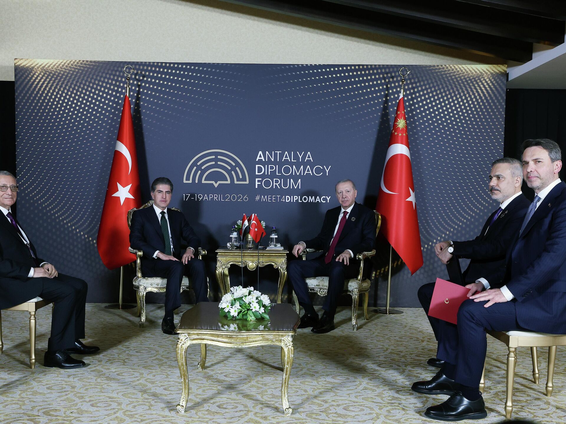 Cumhurbaşkanlığı İletişim Başkanlı'ğından, Erdoğan'ın Barzani ile Antalya Diplomasi Forumu 2026 kapsamındaki görüşmesine ilişkin açıklama yapıldı.