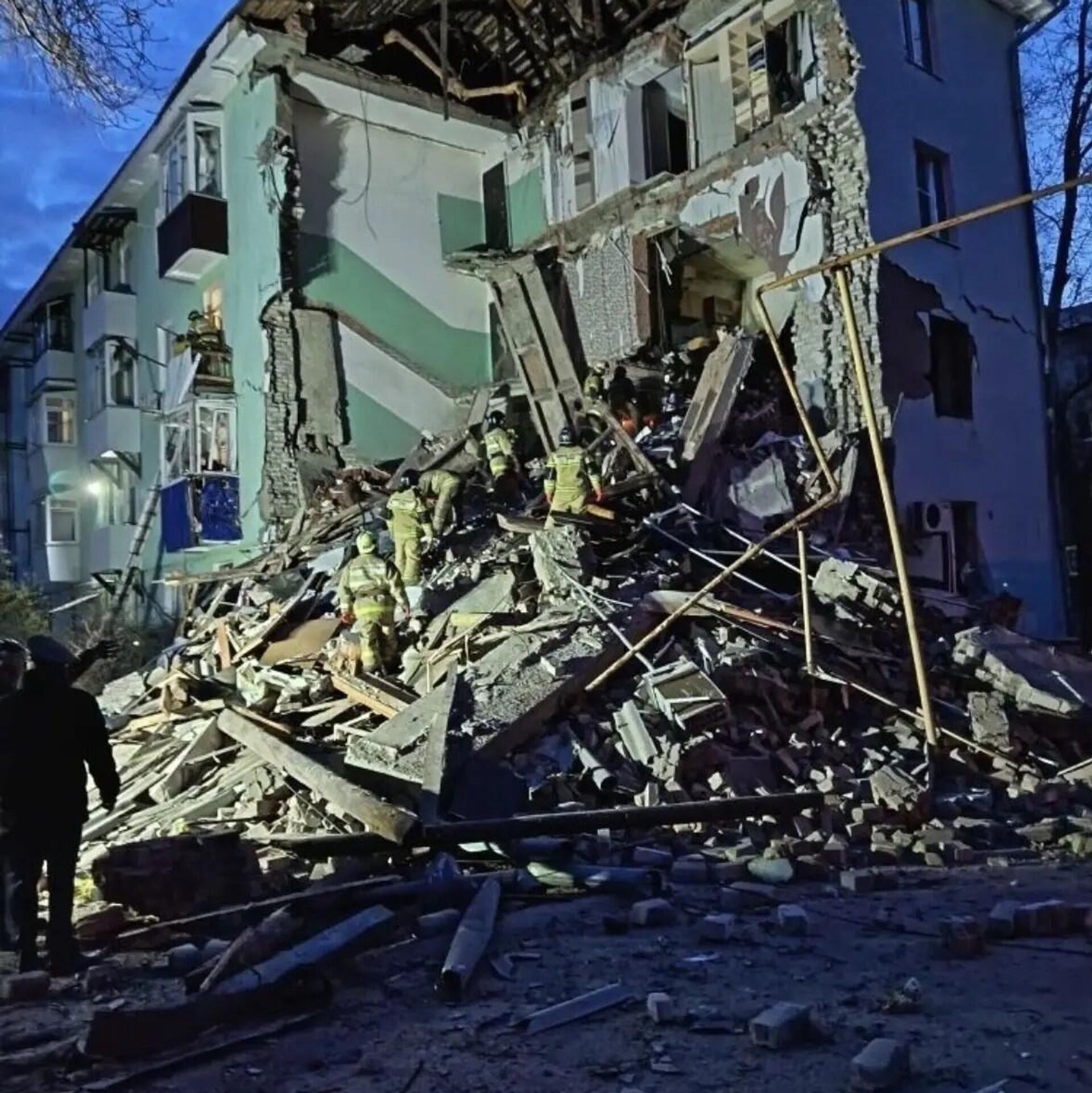 Rusya’nın Sızran kentinde, Ukrayna ordusunun insansız hava araçları (İHA) ile düzenlediği saldırı sonucu bir apartman çöktü. Olayda 11 kişi yaralandı. 22.04.2026, Sputnik Türkiye