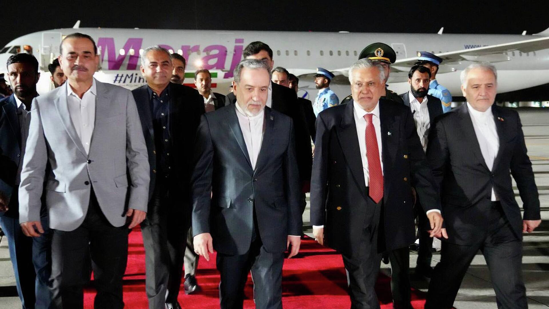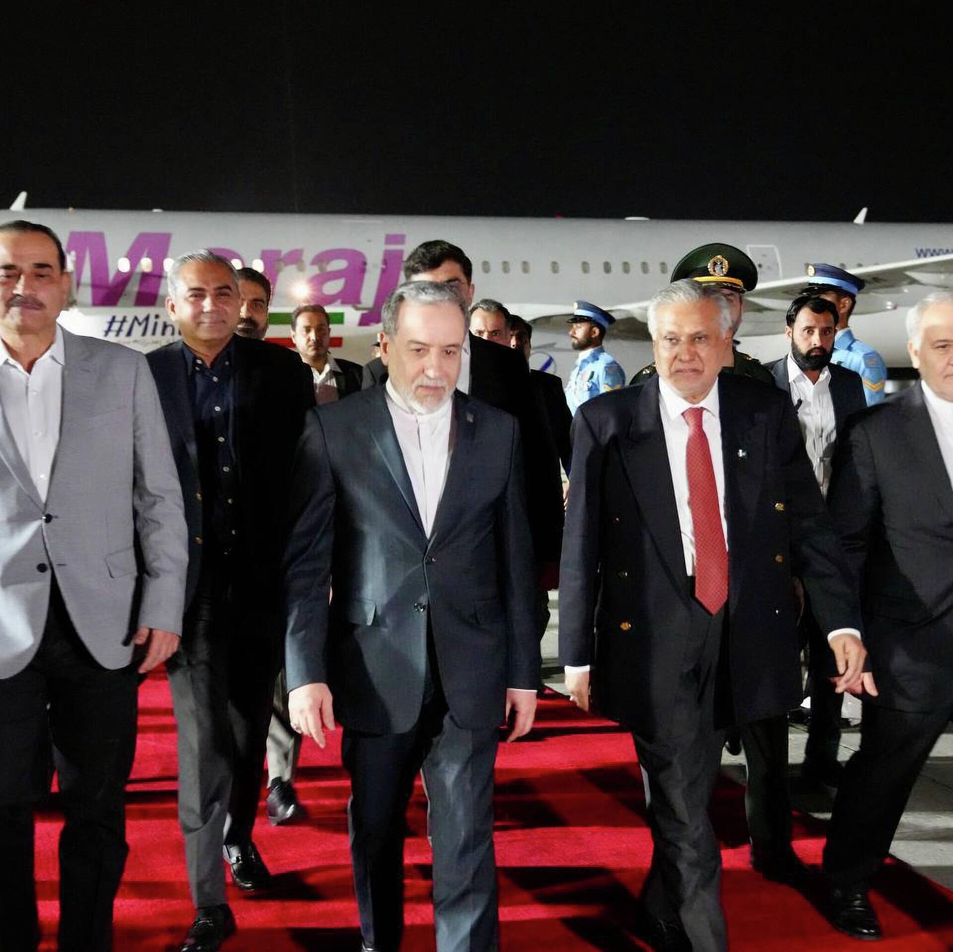 Arakçi, Pakistan Dışişleri Bakanı İshak Dar, Kara Kuvvetleri Komutanı Orgeneral Asim Munir ve diğer üst düzey yetkililer tarafından karşılandı.